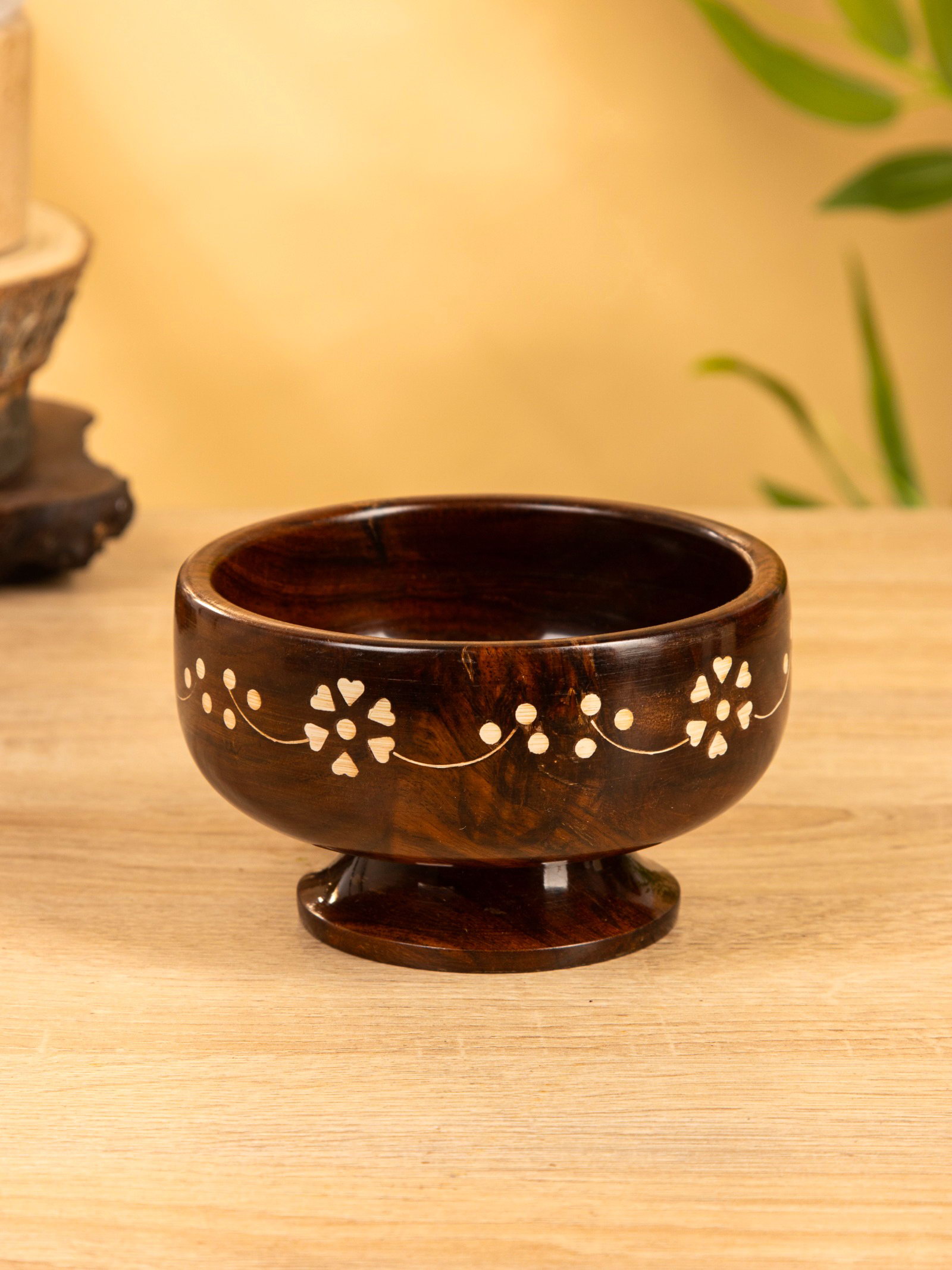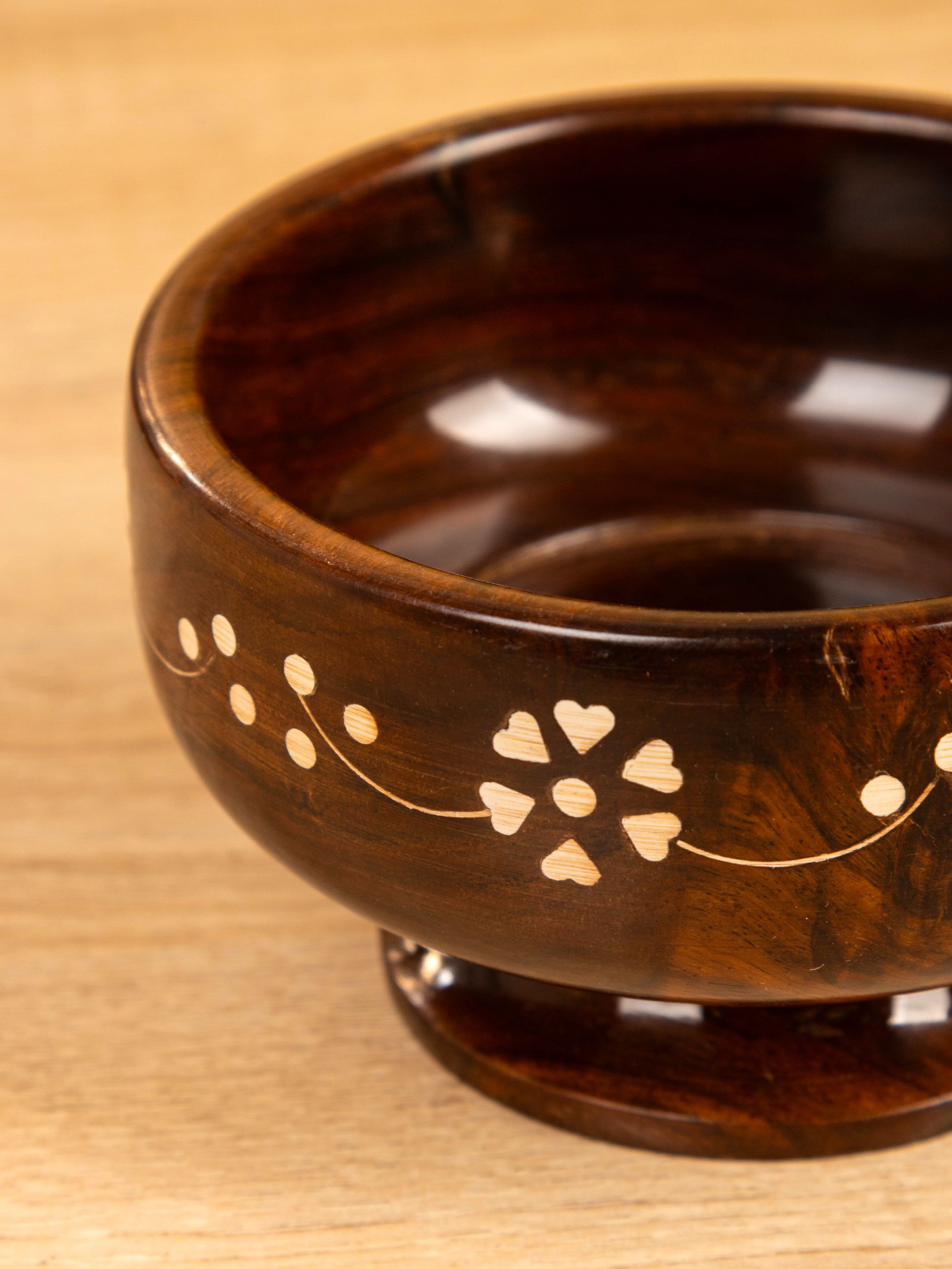 Чаша на ножке "В самое сердце" 13х13х8 см, дерево шишам, 13x13x8 см., Индия