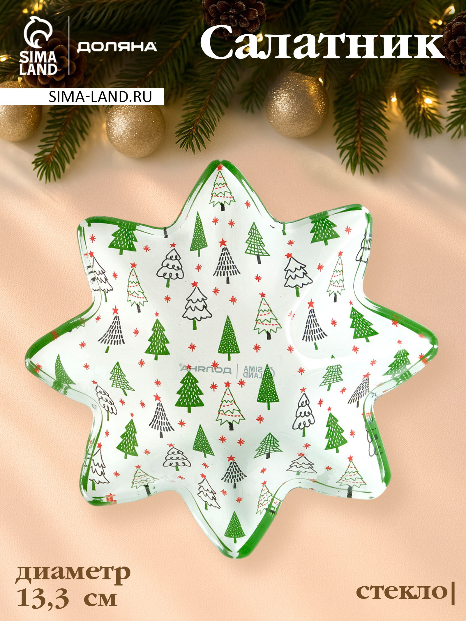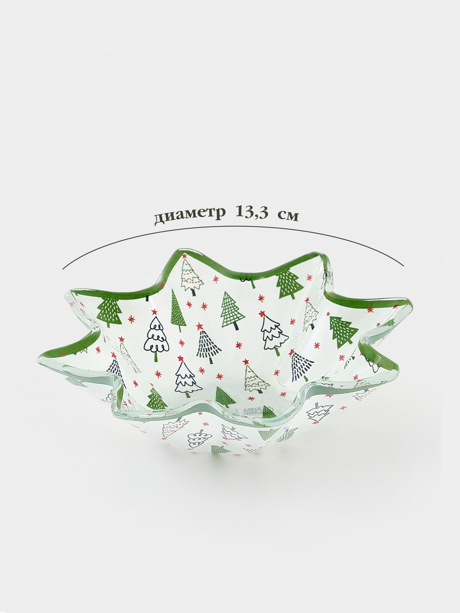 Цвет: Белый, Зелёный Размер упаковки: 4.5 x 13 x 13.5 см. tnved: 7013500000 Тематика: Новогодняя Набор: Нет Рисунок: Да Символ года: Нет Крышка: Нет Особенности: Без особенностей Текстура: Гладкая Форма: Звезда Для горячего: Да Можно использовать в СВЧ-печи: Нет Можно мыть в посудомоечной машине: Нет Добавьте праздничного шарма салатам! Новогодний салатник в форме звезды – стеклянная ёмкость в белом и зелёным цветах с новогодним рисунком. Она подходит для подачи салатов, овощных нарезок и закусок на праздничном столе. Особенности: