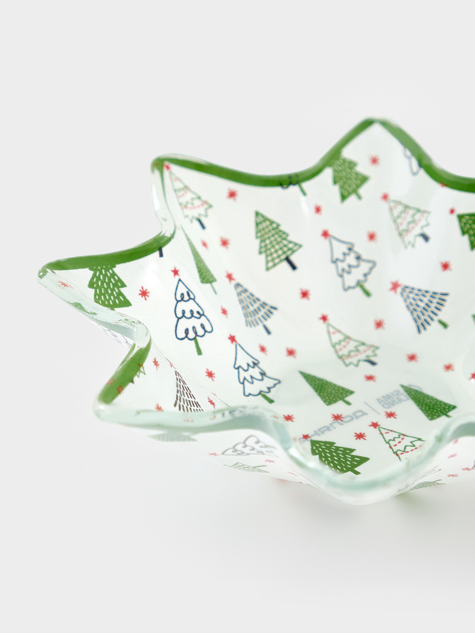 Салатник "Елочка", d=13.3, h=3.6 см, стекло, белый, зелёный, 13.3х13.3х3.6 см., Доляна, Китай