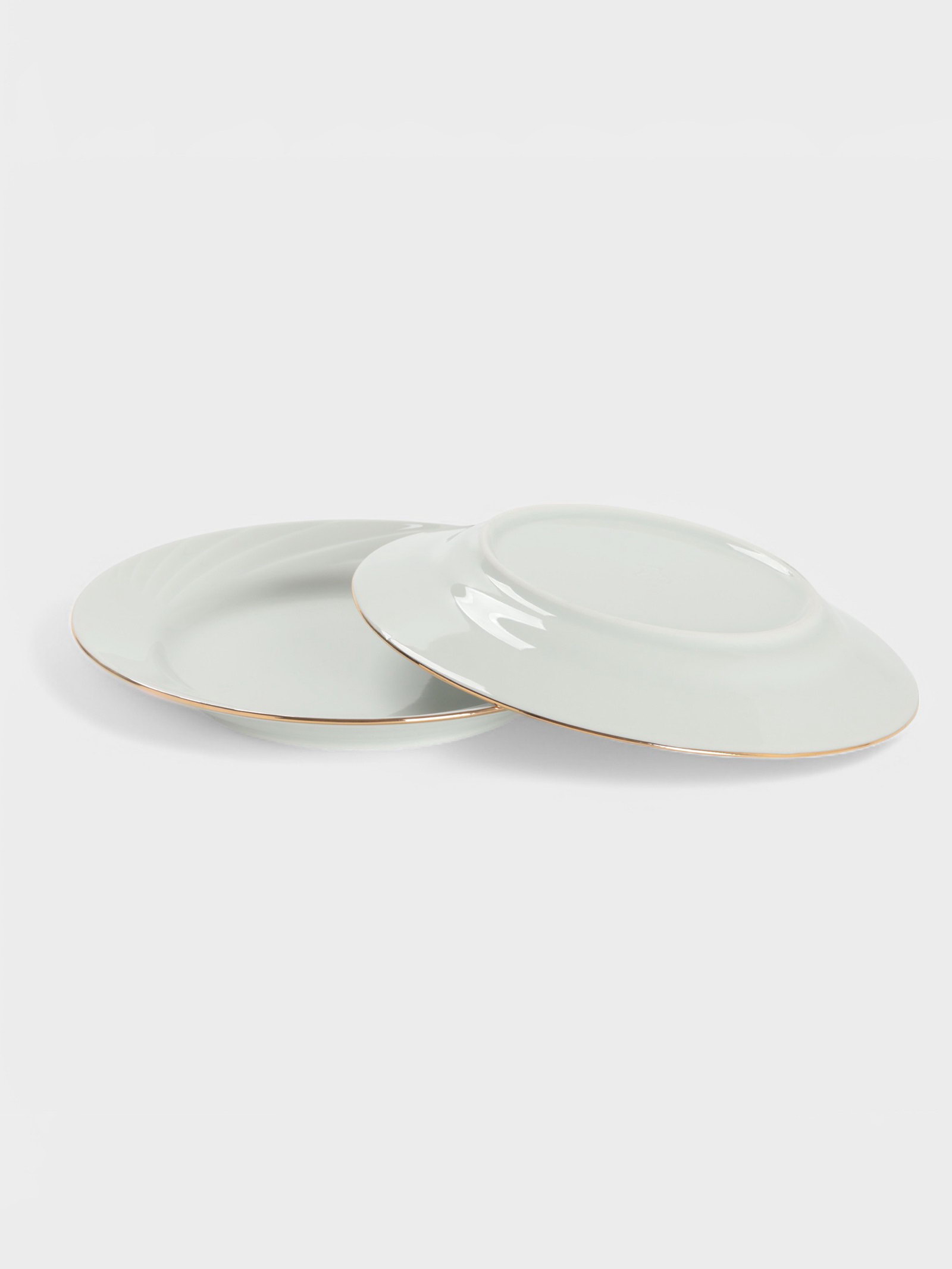 Цвет: Белый, Золотистый Размер упаковки: 29 x 23 x 42 см. В наборе, шт.: 36 Набор: Да Особенности: С золотой отводкой Для горячего: Да Вид тарелки: Плоская tnved: 6911100000 tnved: 6911100000 Можно мыть в посудомоечной машине: Нет Можно использовать в СВЧ-печи: Нет Рисунок: Да Текстура: Гладкая Тематика: Однотонная Матовая поверхность: Нет Запрет реализации по сегментам: 00000000485 Выпускаемая продукция ЗАО "Добрушский фарфоровый завод" является высококачественной, экологически чистой, соответствует требованиям международных и европейских норм. Изделия из фарфора бывают настолько тонки, что через них просматривается солнечный свет. Несмотря на всю утончённость, вся фарфоровая посуда наделена особой прочностью. Преимущества: