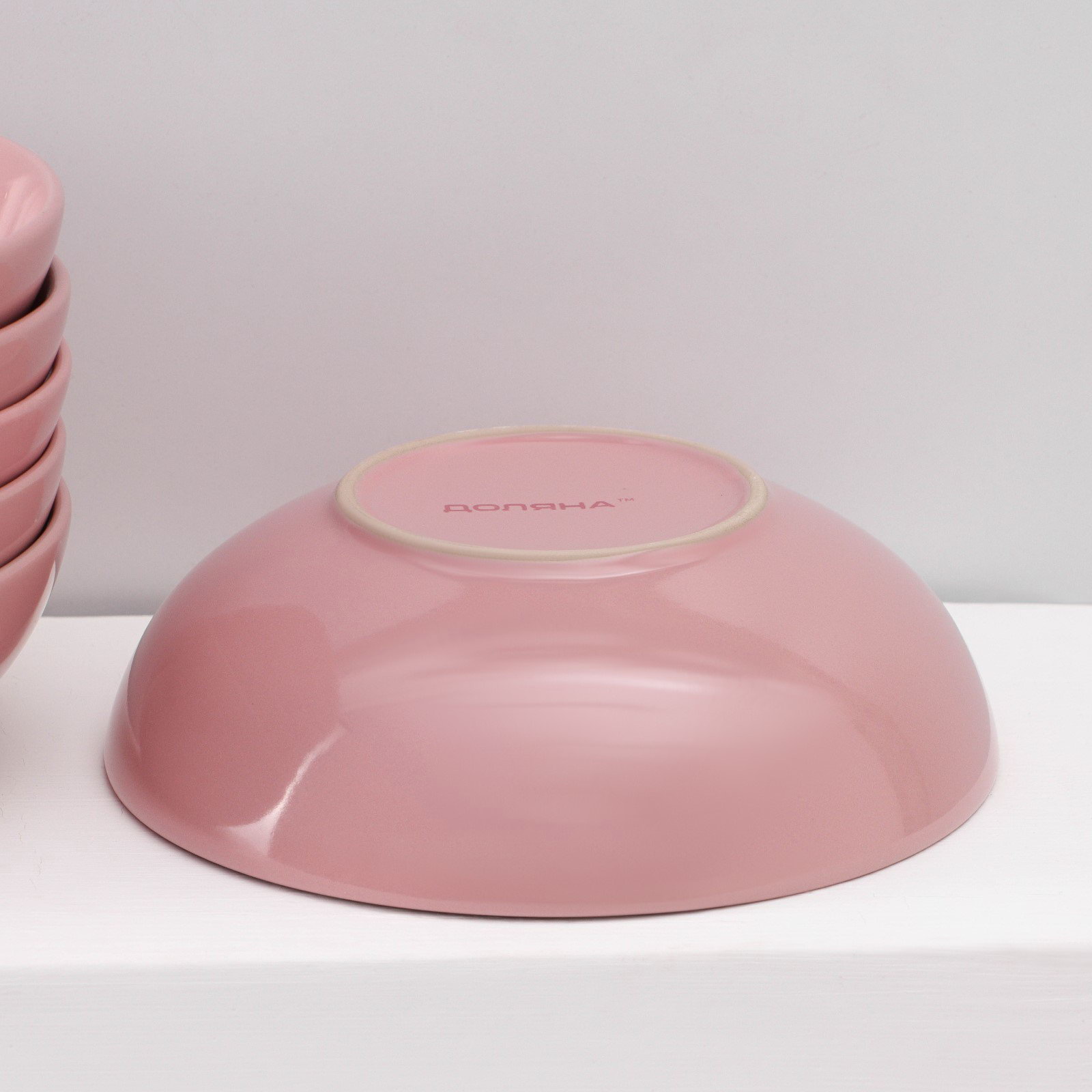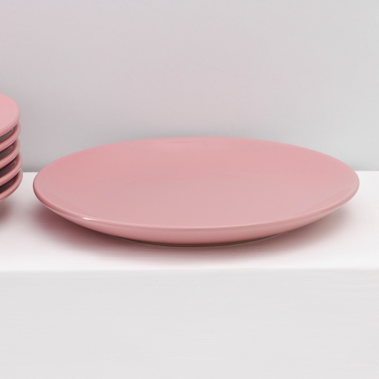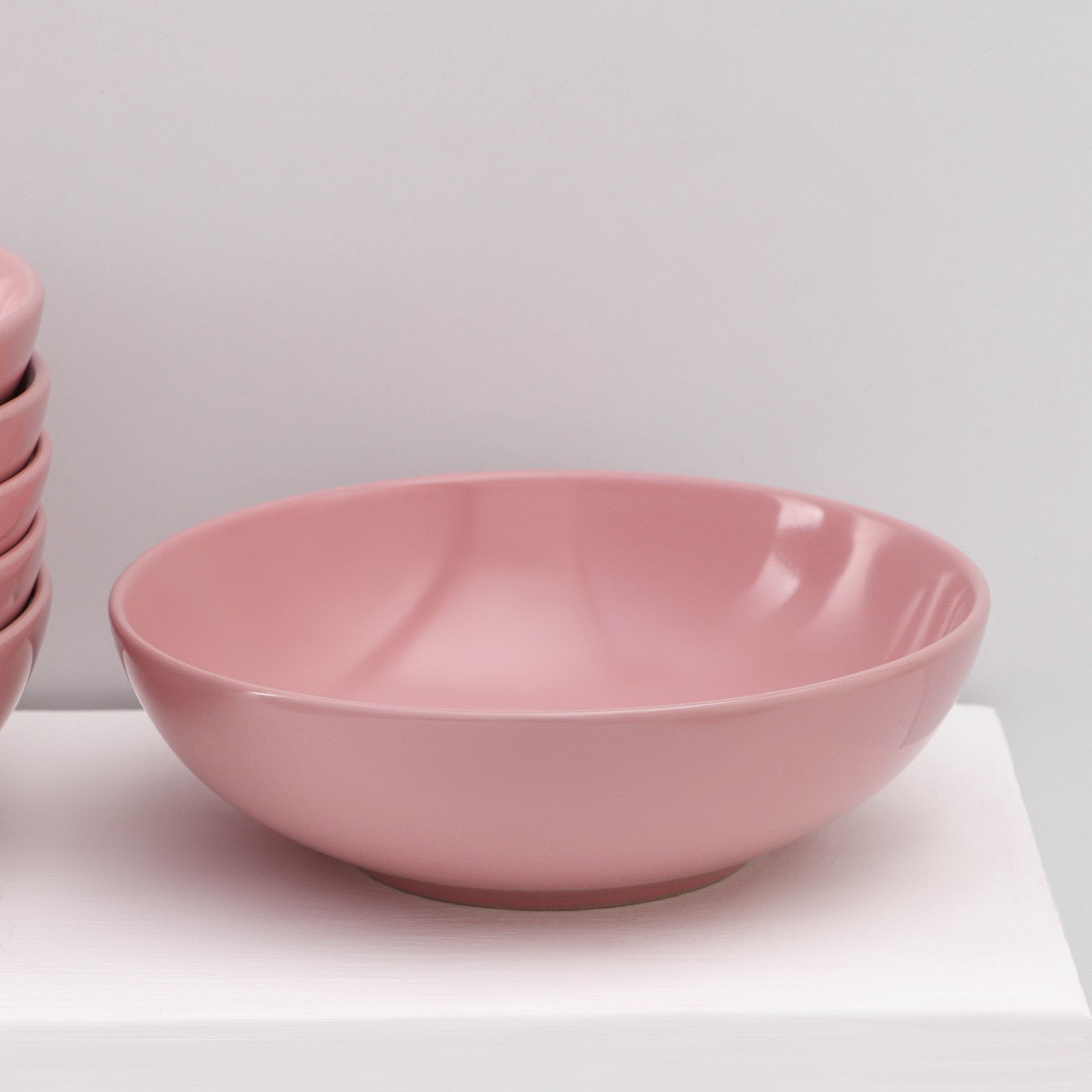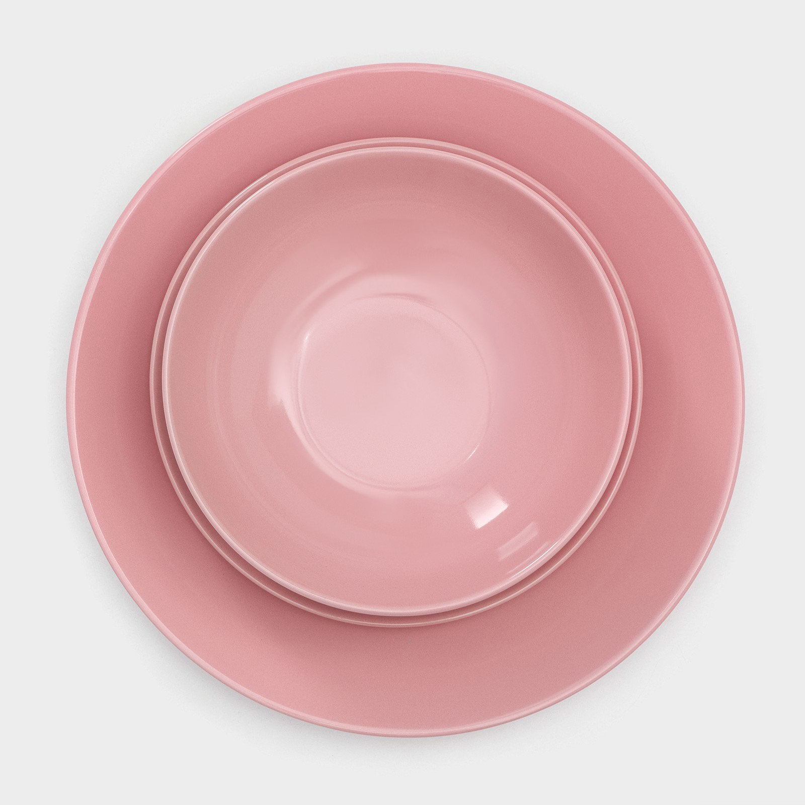Тарелки "Пастель", 18 предметов: 6 тарелок d=19 см, 6 тарелок d=27 см, 6 мисок d=19 см, керамика, розовые, 32.5x58x29 см., Доляна, Китай