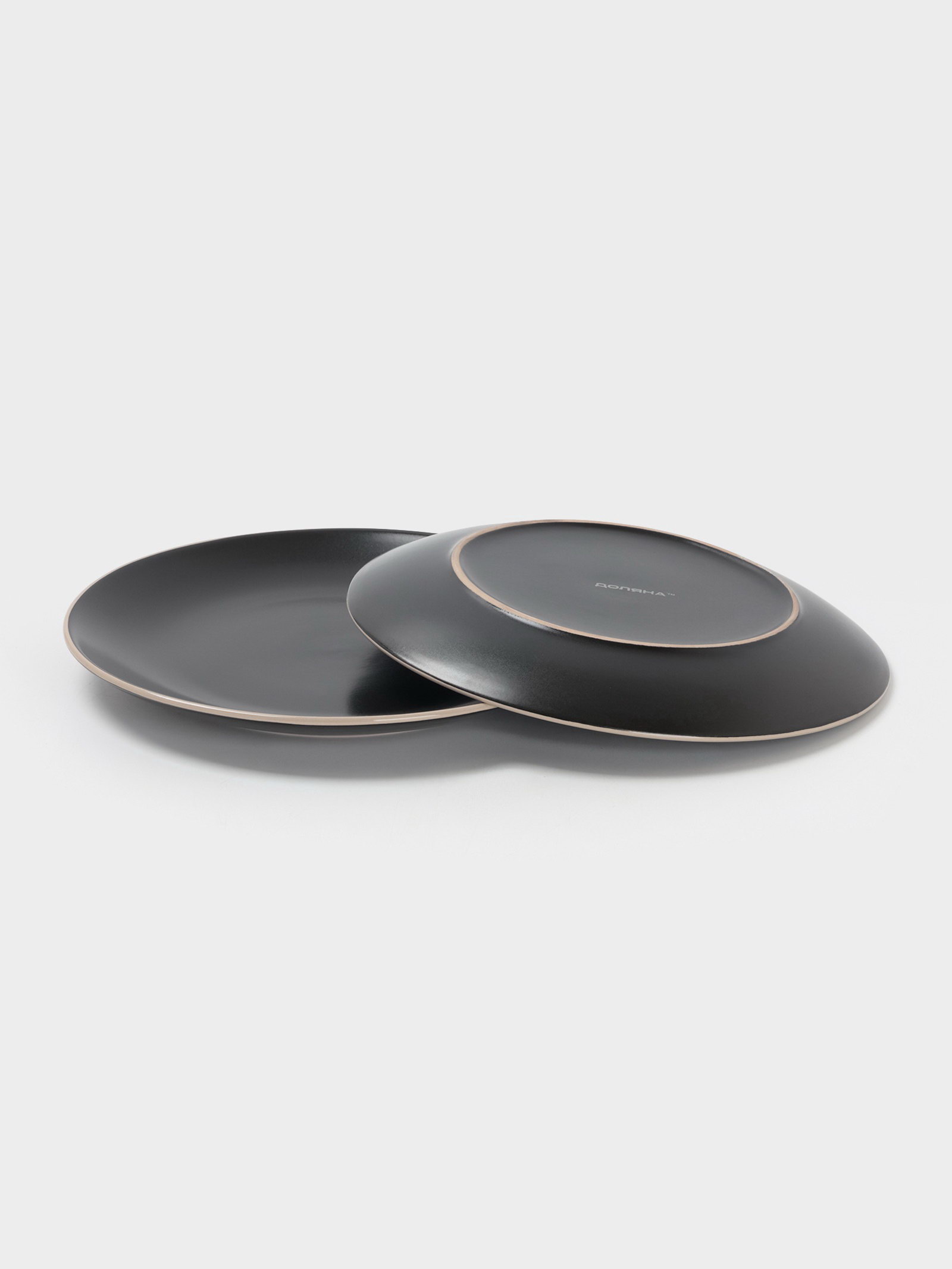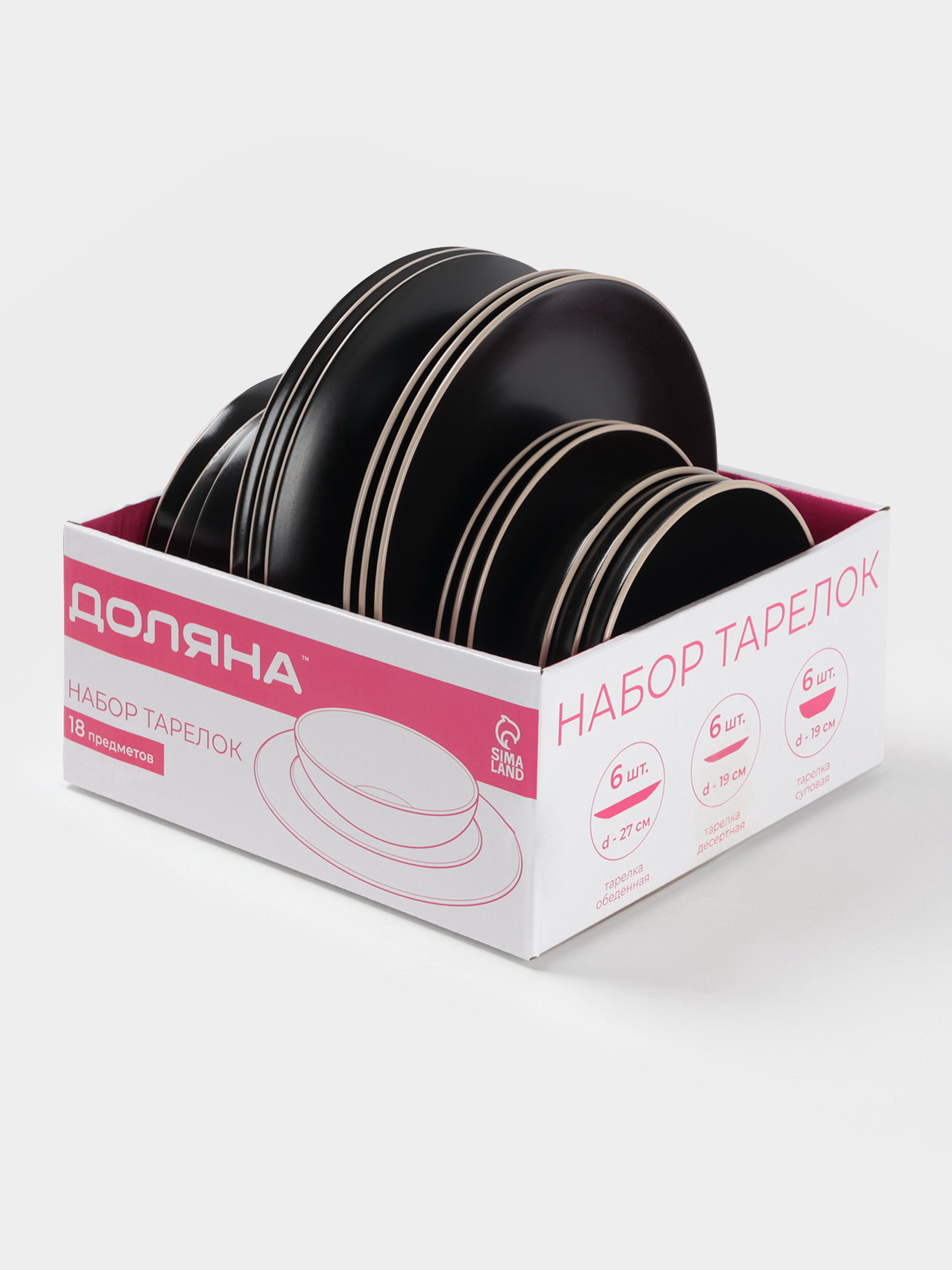 Набор тарелок "Ваниль", 18 предметов: 6 тарелок d=19 см, 6 тарелок d=27 см, 6 мисок d=19 см, керамика, чёрный, 32x58x29 см., Доляна, Китай