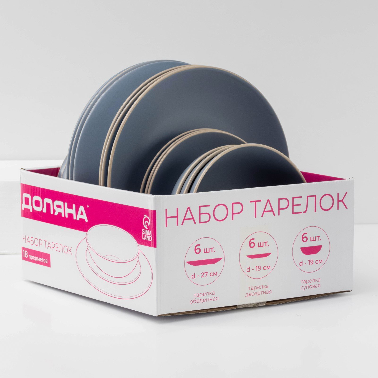 Набор тарелок "Ваниль", 18 предметов: 6 тарелок d=19 см, 6 тарелок d=27 см, 6 мисок d=19 см, керамика, голубой, 32x58x29 см., Доляна, Китай