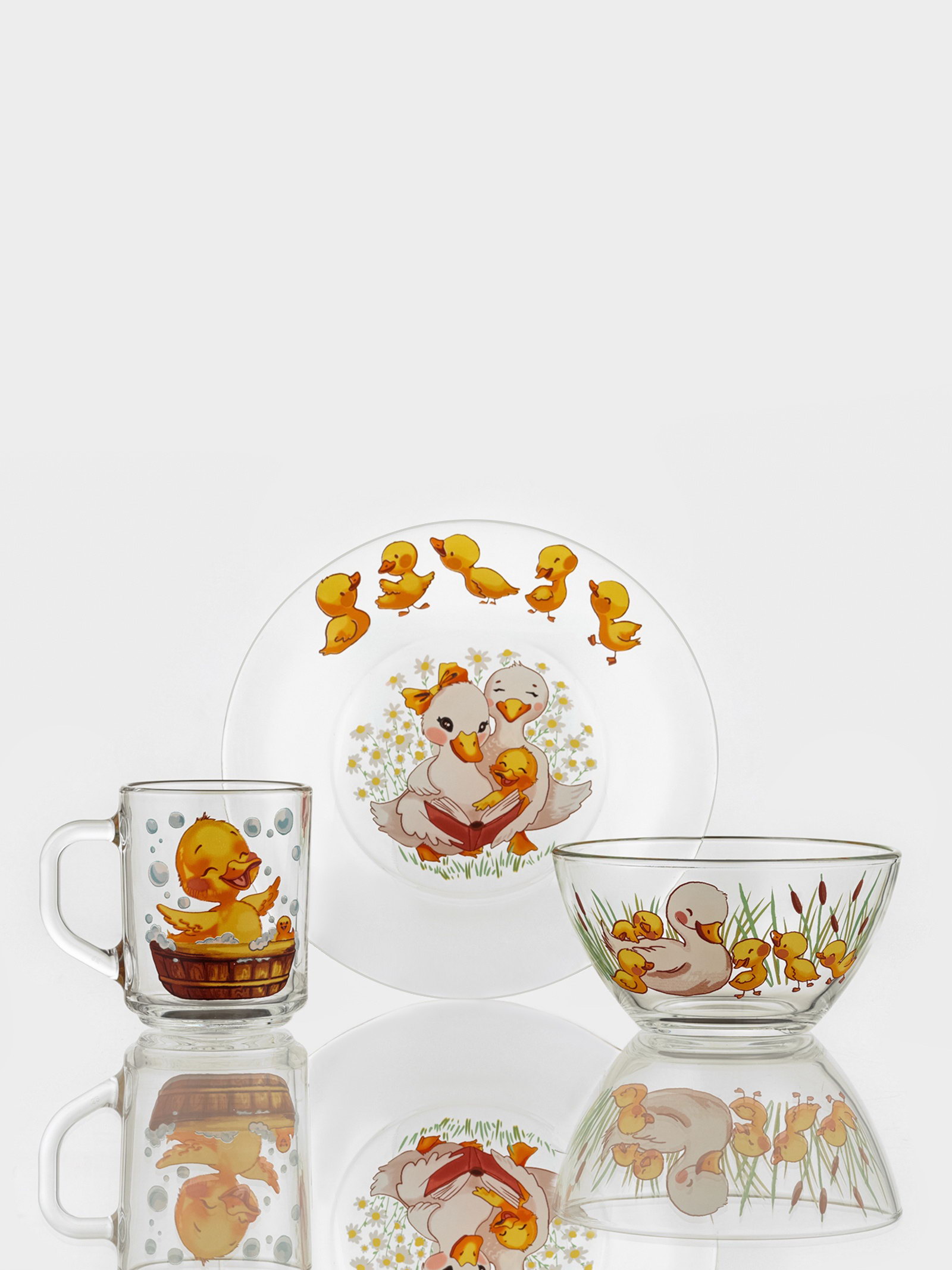 Набор детской посуды "Утята", 3 предмета: кружка, салатник, тарелка, стекло, прозрачный, ОСЗ, Россия