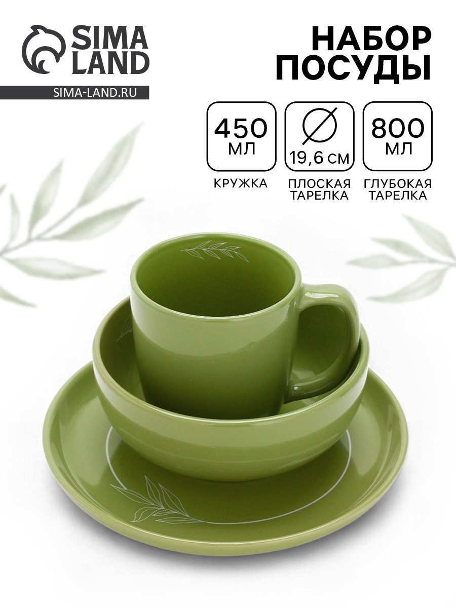 Набор посуды "Олива": тарелка плоская, тарелка суповая, кружка, 38.5x47.5x10 см., Dolce Ceramo., Китай