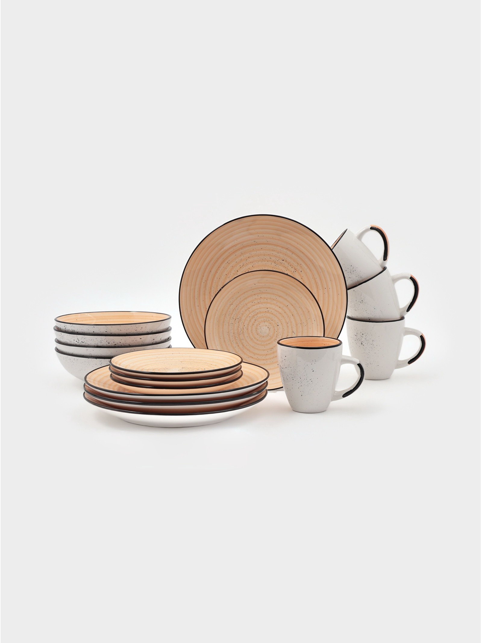 Набор посуды Nature Тар, 16 предметов: тарелки 8 шт. d=19 см, 27 см, глубокие 4 шт. 830 мл, кружки 4 шт. 400 мл, керамика, оранжевый, Доляна, Китай