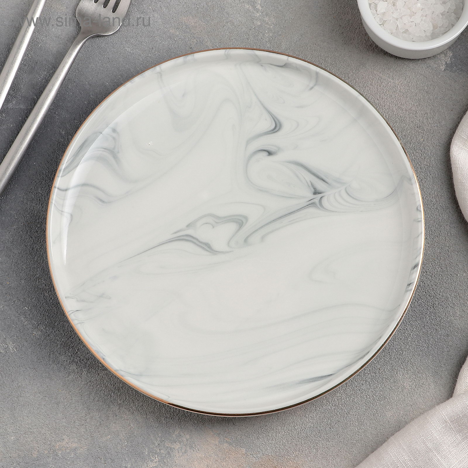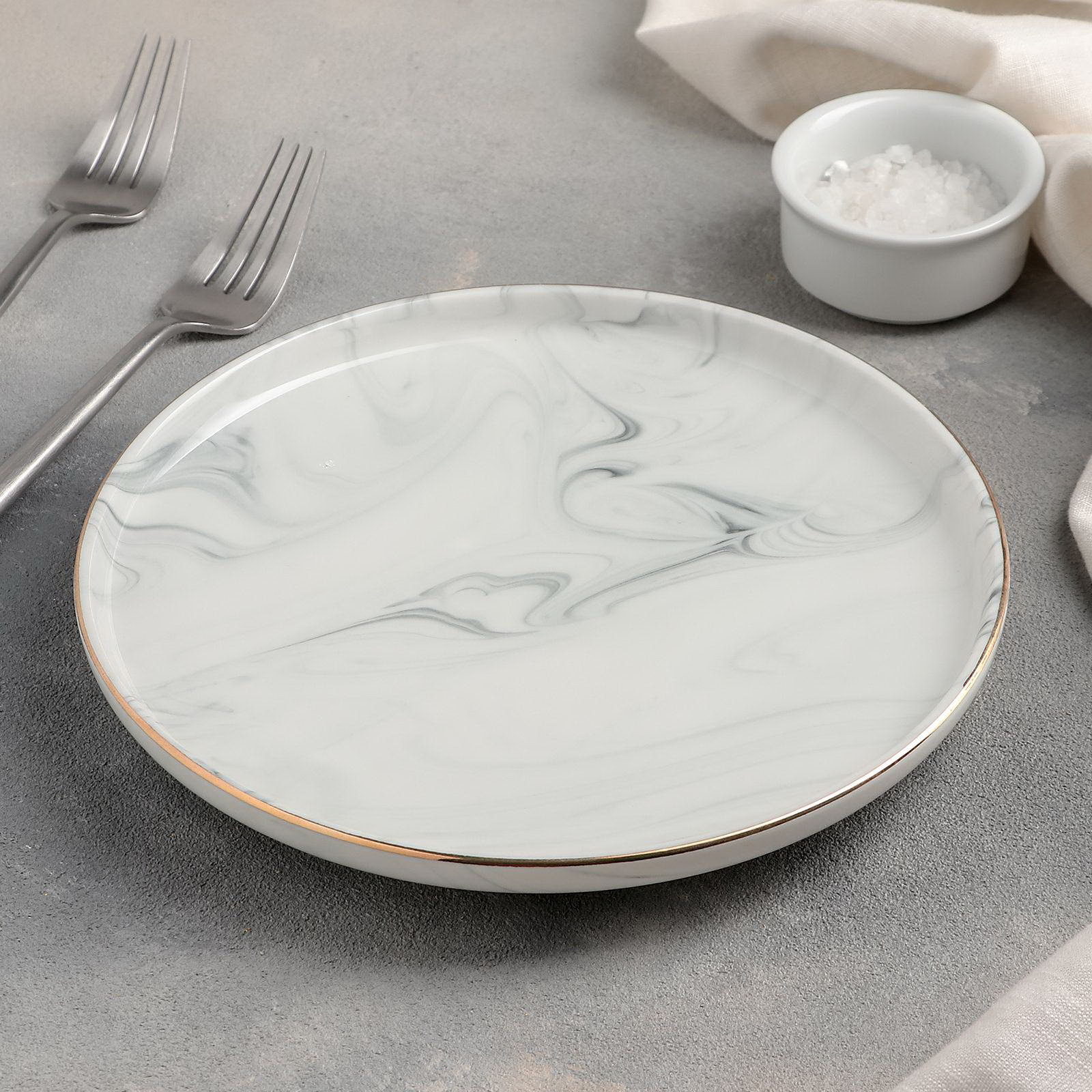 Тарелка керамическая десертная "Мрамор", d=20 см, цвет серый, 20х20х2.5 см., Китай