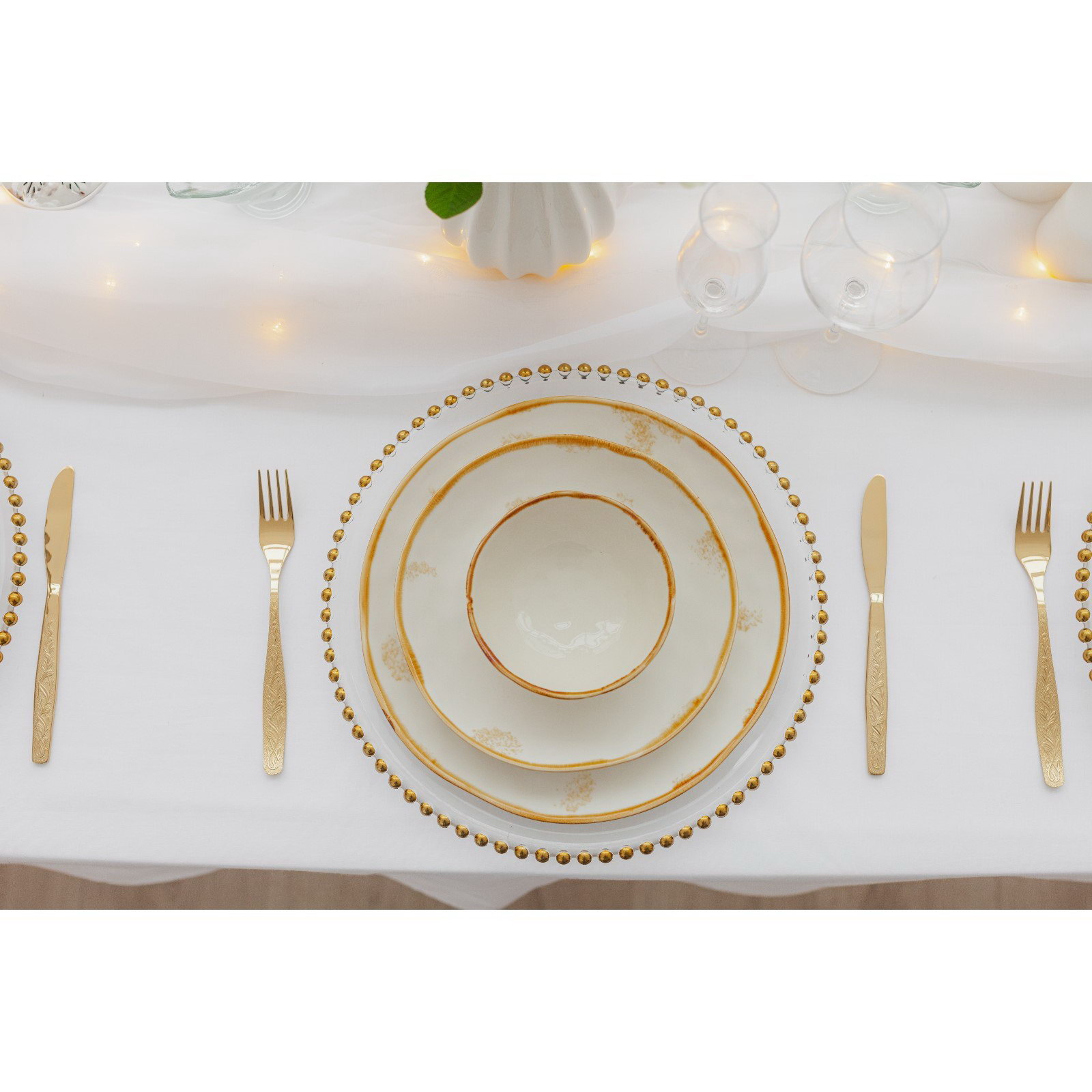 Тарелка Organic Gold, d=27.5 см, фарфор, белая, 27.5х27.5х2.5 см., Доляна, Китай