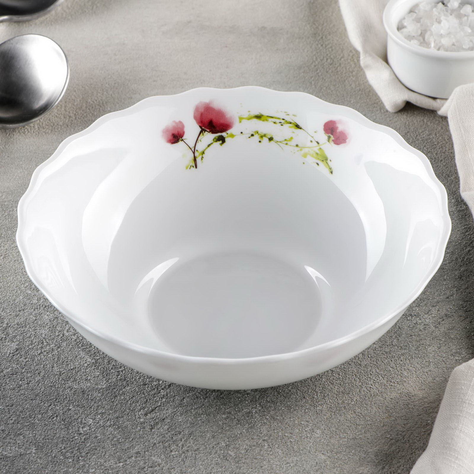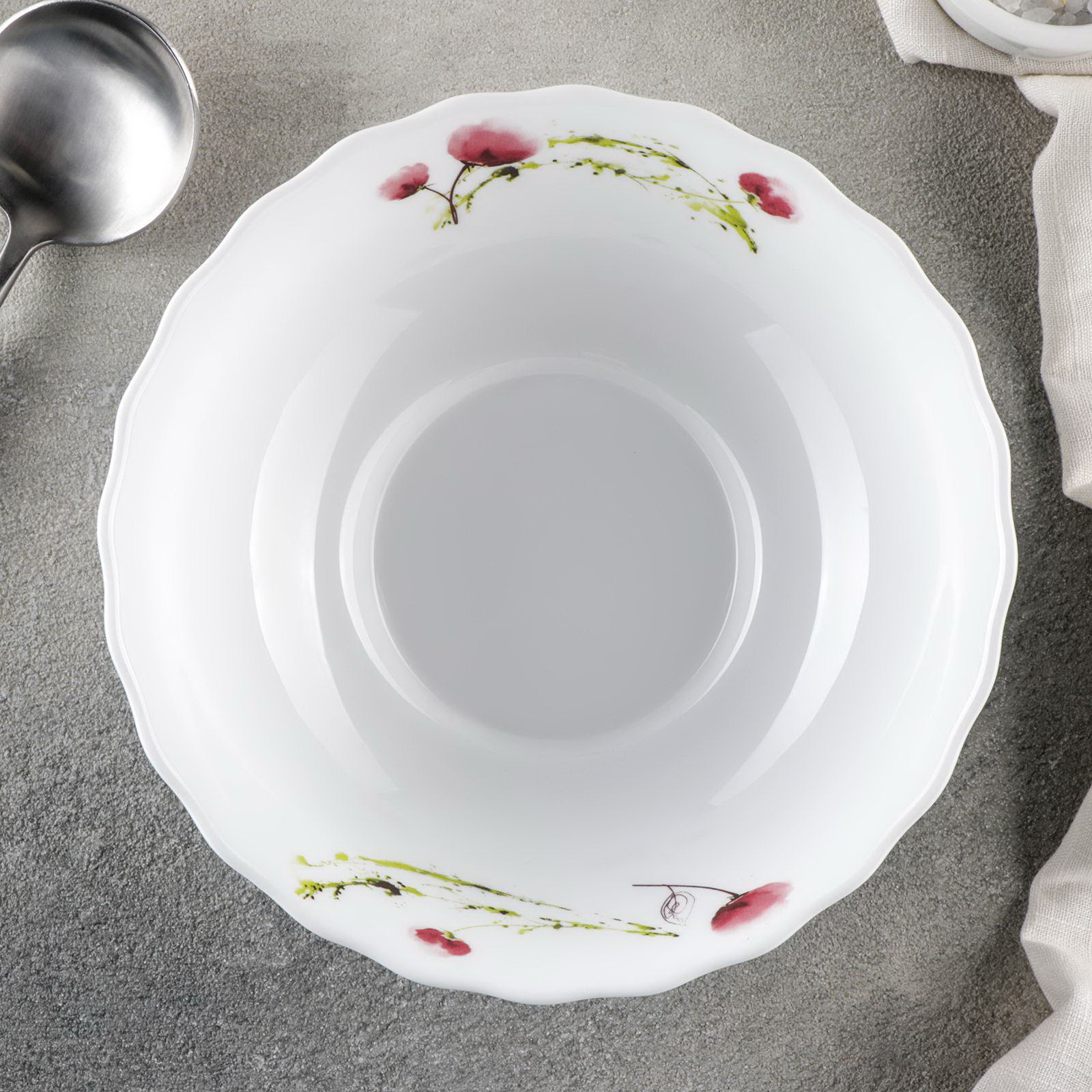 Тарелка глубокая "Нежные маки", 600 мл, d=17.5 см, стеклокерамика, цвет белый, 17.5х17.5х5.5 см., Доляна, Китай