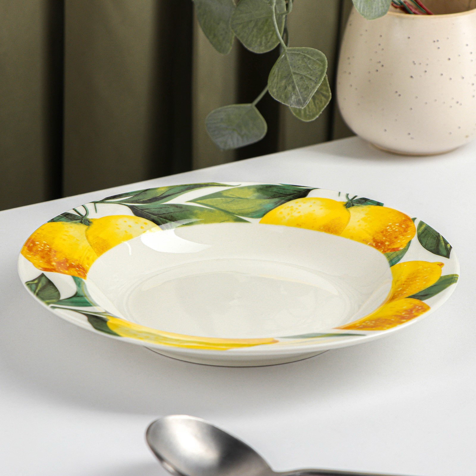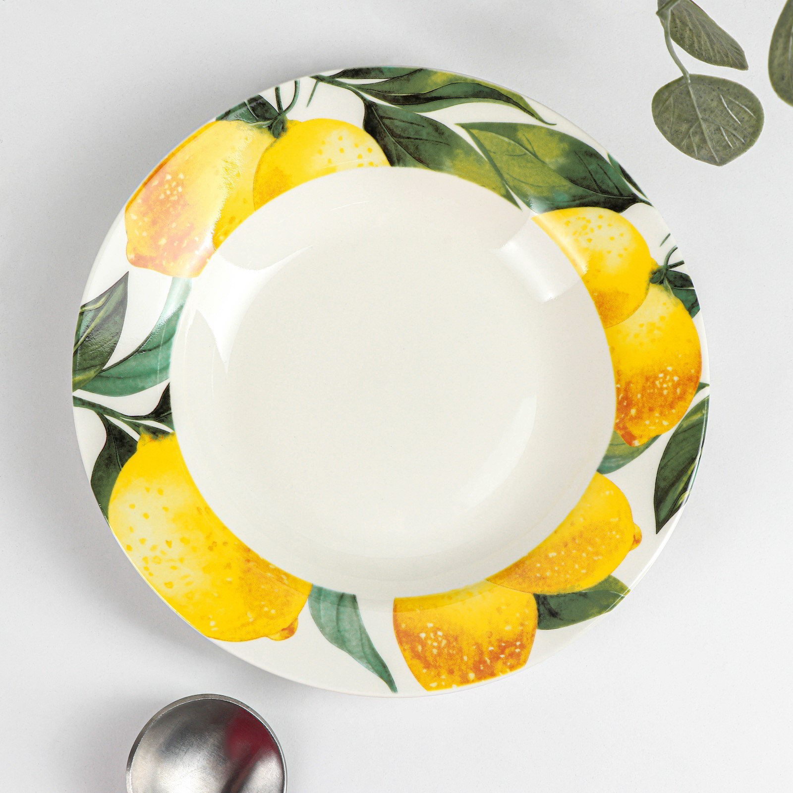 Тарелка глубокая "Лимон", d=20 см, цвет белый, 20х20х3 см., Доляна, Китай
