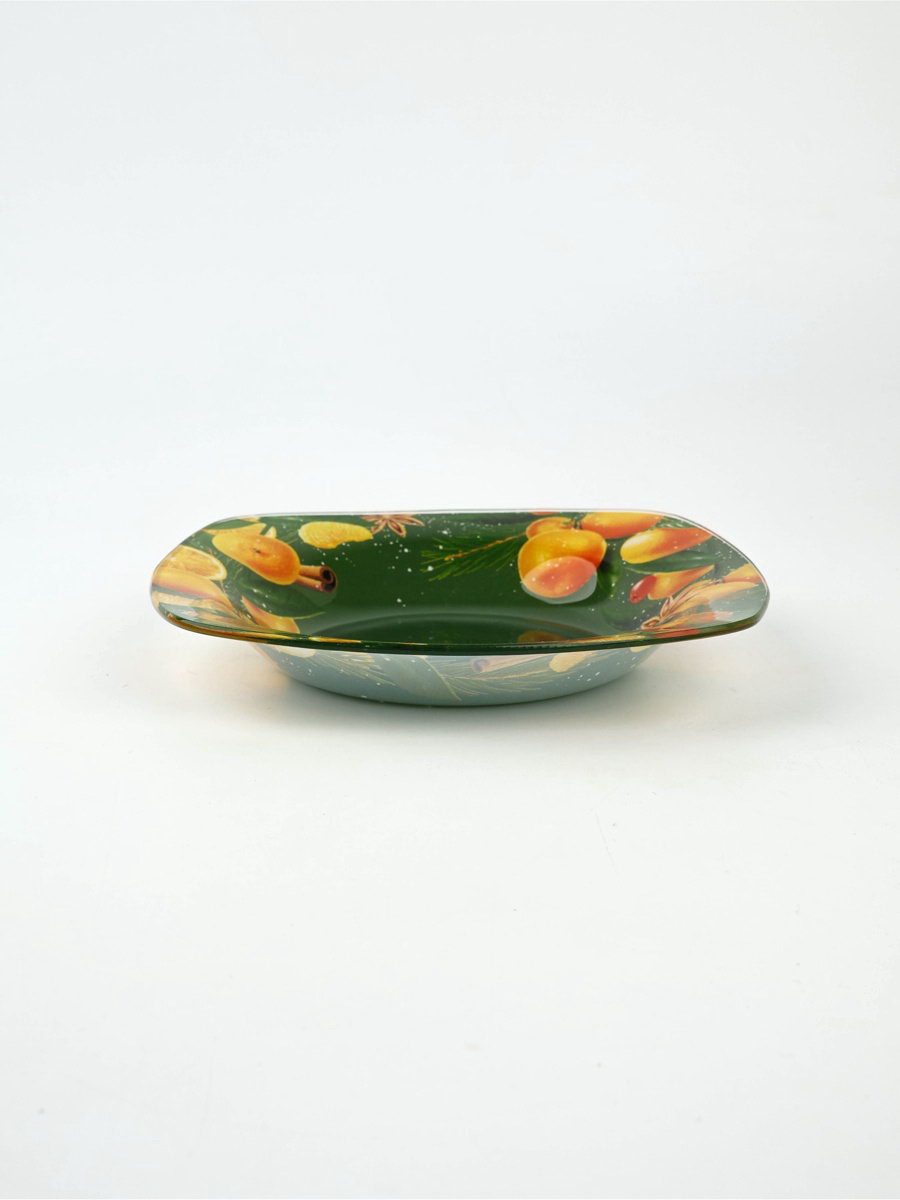 Тематика: Новогодняя, Фрукты Размер упаковки: 19.5 x 19.5 x 3 см. Форма: Квадрат tnved: 7013500000 Вид тарелки: Плоская Текстура: Гладкая Особенности: Деколь Набор: Нет Рисунок: Да Для горячего: Да Цвет: Зелёный Можно использовать в СВЧ-печи: Да Можно мыть в посудомоечной машине: Да Тематика праздника: Новый год Символ года: Нет Стеклянная глубокая тарелка размером 20 ? 20 см идеальный выбор для новогоднего стола. Преимущества тарелки включают: