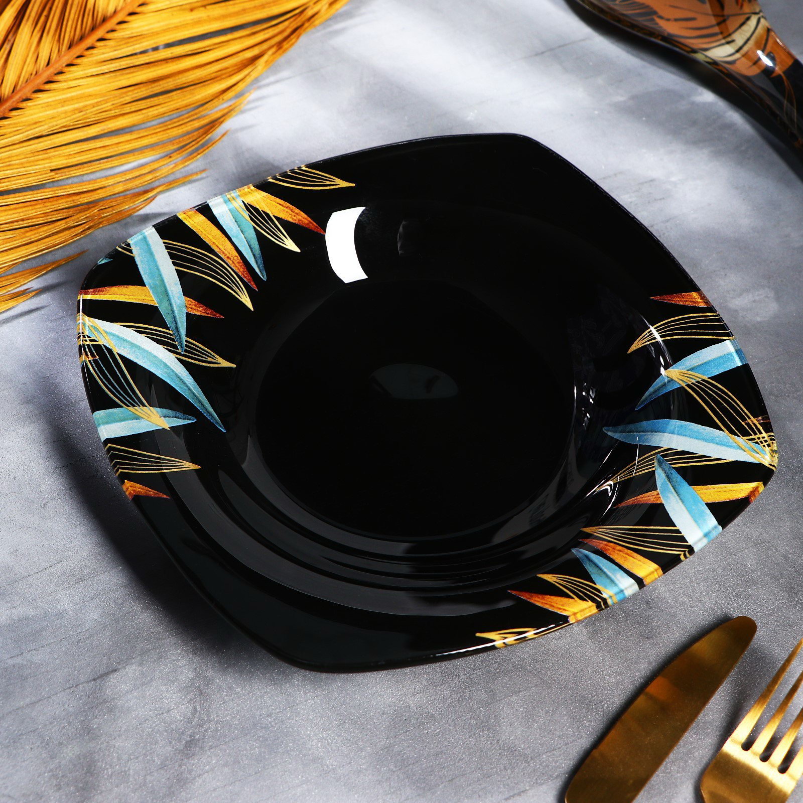 Тарелка суповая стеклянная "Тропики", 20x20 см, 20х20х1.5 см., Дорого внимание, Китай