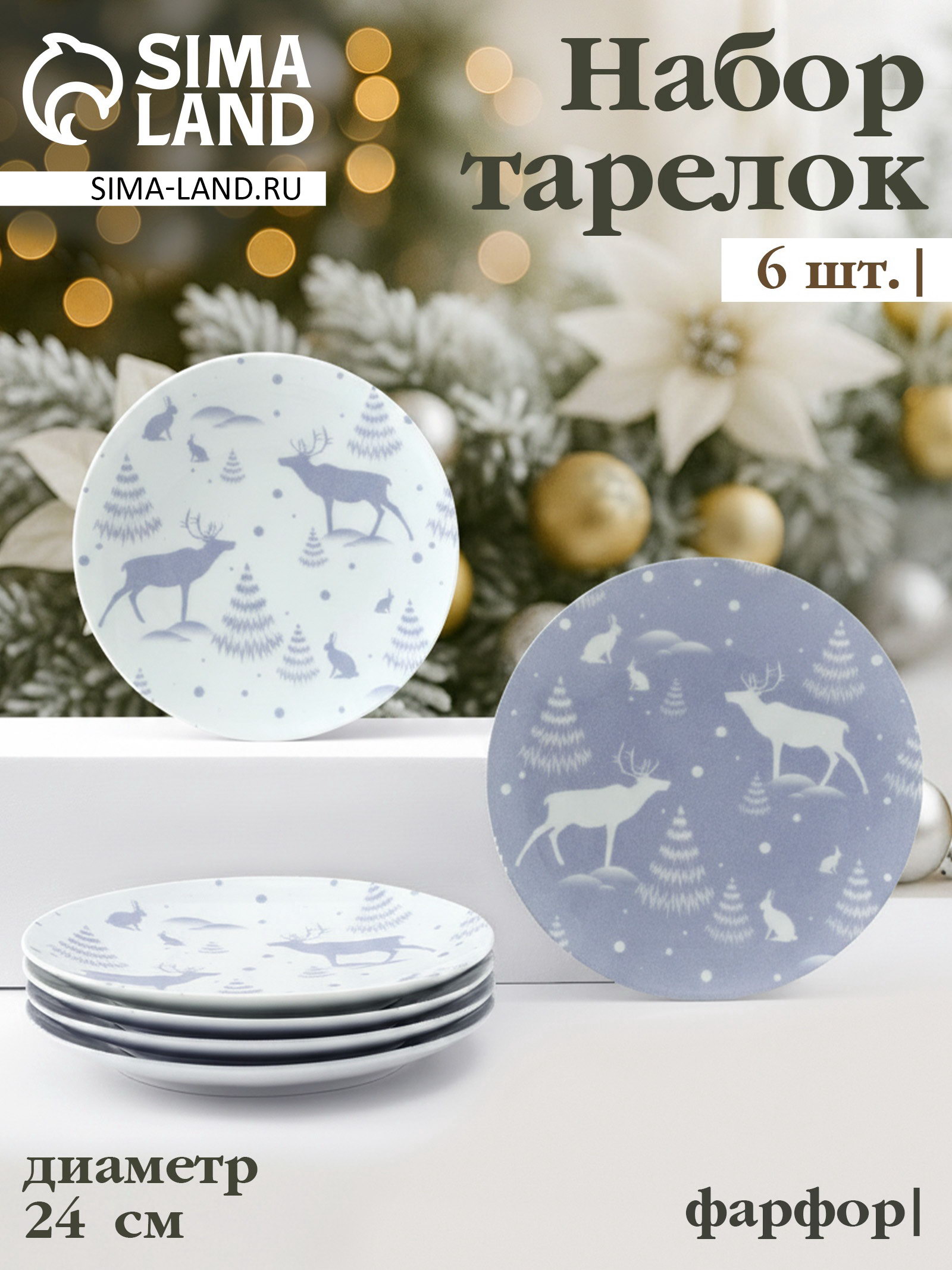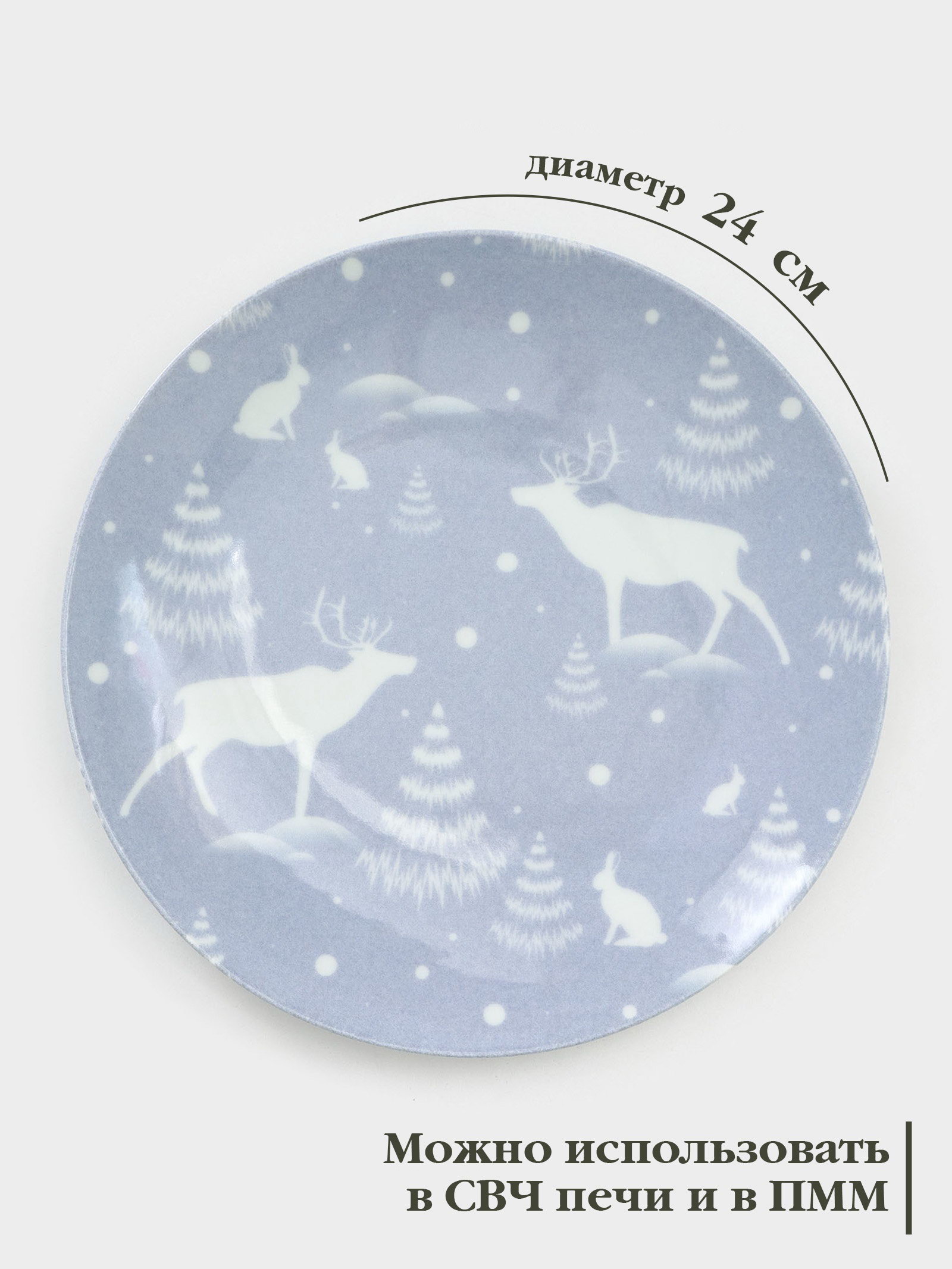 Тарелки новогодние Добрушский завод "Зимний лес", набор 6 шт., d=24 см, фарфор, МИКС, 24 см., Добрушский фарфоровый завод, Беларусь