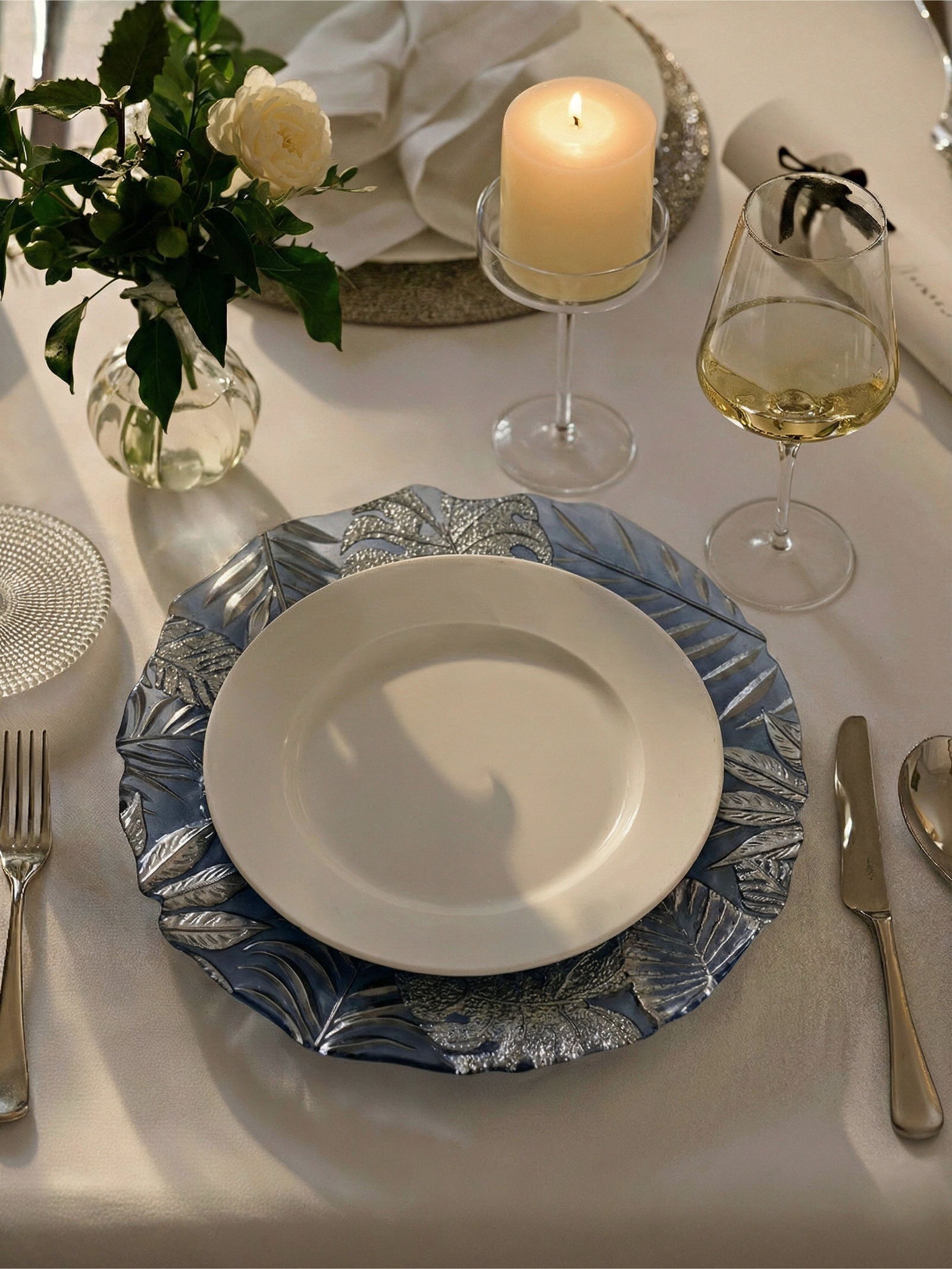 Вид тарелки: Плоская, Подстановочная Размер упаковки: 33 x 2 x 33 см. Набор: Нет Рисунок: Да Текстура: С рельефом Особенности: Без особенностей Тематика: Растительный орнамент Цвет: Голубой Можно использовать в СВЧ-печи: Нет Можно мыть в посудомоечной машине: Нет Для горячего: Нет Форма: Круг tnved: 7013500000 Погрузитесь в атмосферу уюта и стиля с этой изысканной подстановочной тарелкой, которая станет настоящим украшением вашего стола. С диаметром 33 см и красивым цветом, она идеально подходит для сервировки как повседневных, так и праздничных блюд. Изготовленная из качественного стекла, тарелка обладает рельефной текстурой и оригинальным растительным орнаментом, который добавляет ей уникальности. Преимущества