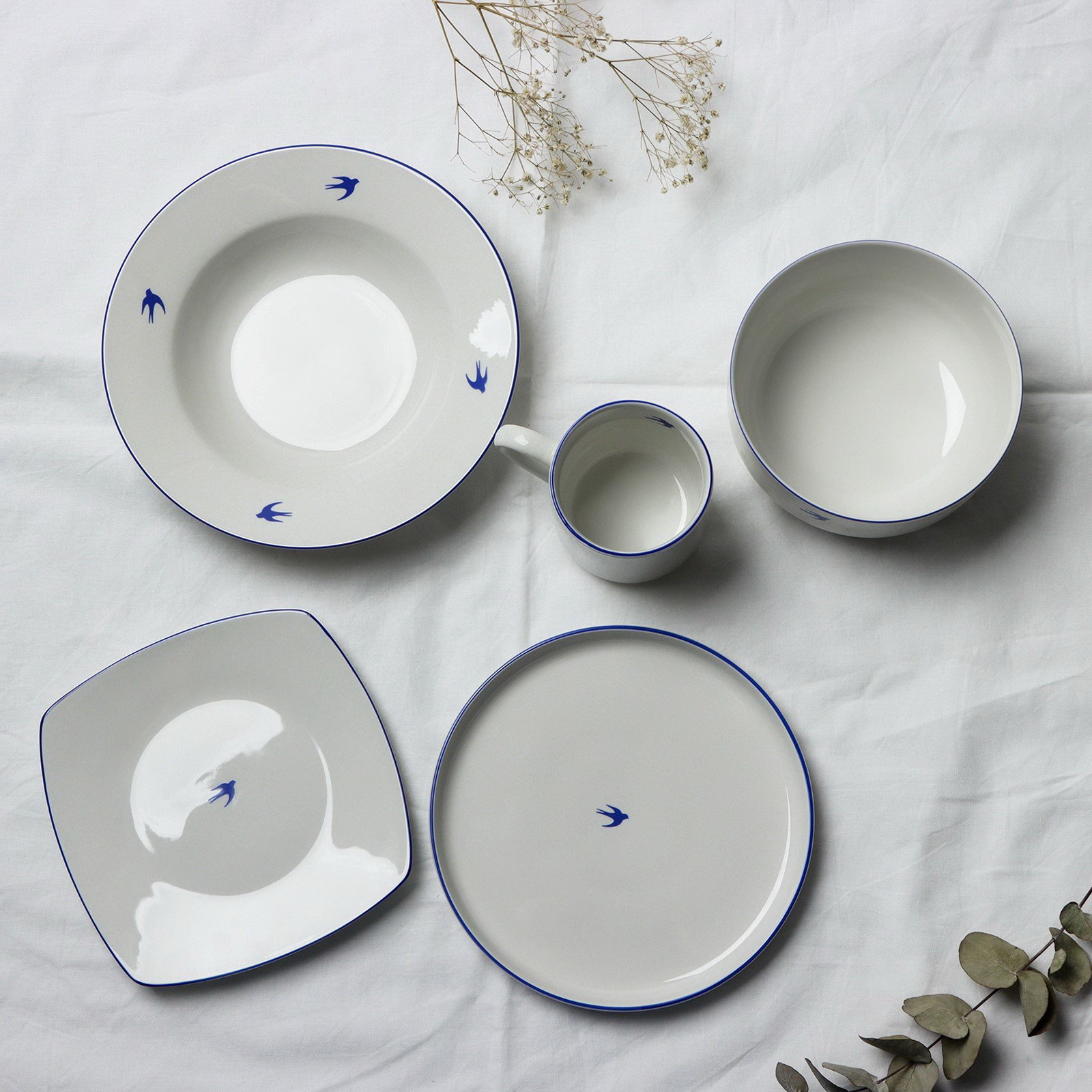 Тарелка плоская керамическая "Ласточка", 18x18 см, ручная работа, 18х18х6.5 см., Dolce Ceramo., Китай