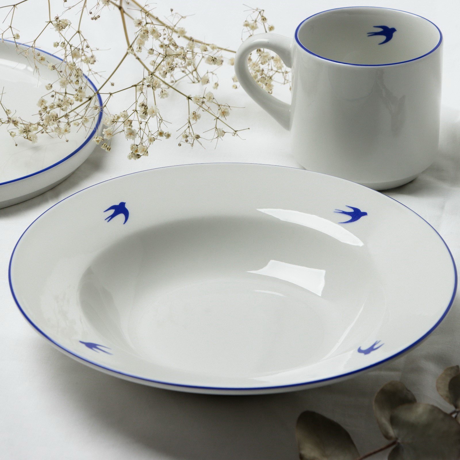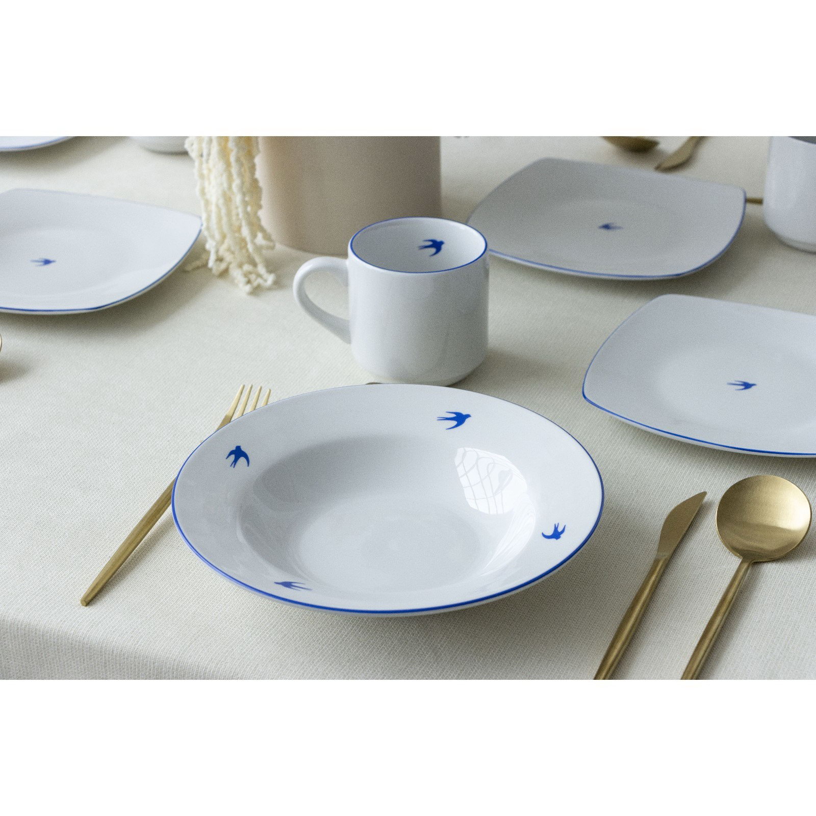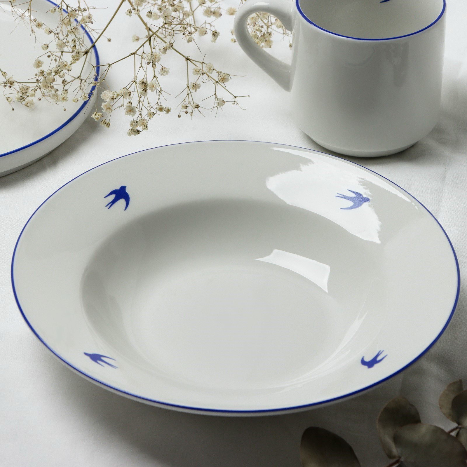 Тарелка суповая керамическая "Ласточка", d=22.4 см, ручная работа, 22.4х22.4х4.5 см., Dolce Ceramo., Китай