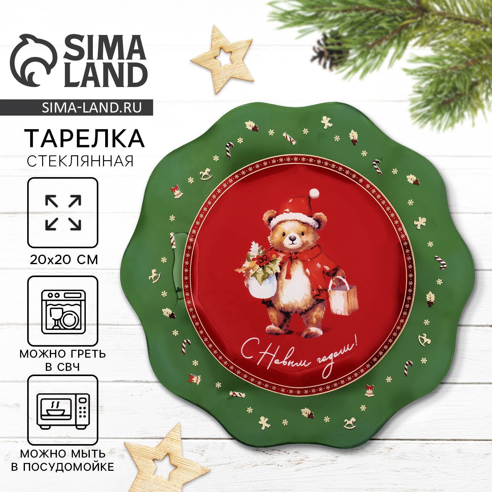 Тарелка плоская новогодняя "С Новым годом! Мишка", d=20 см, 20х20х1.5 см., Дорого внимание, Китай