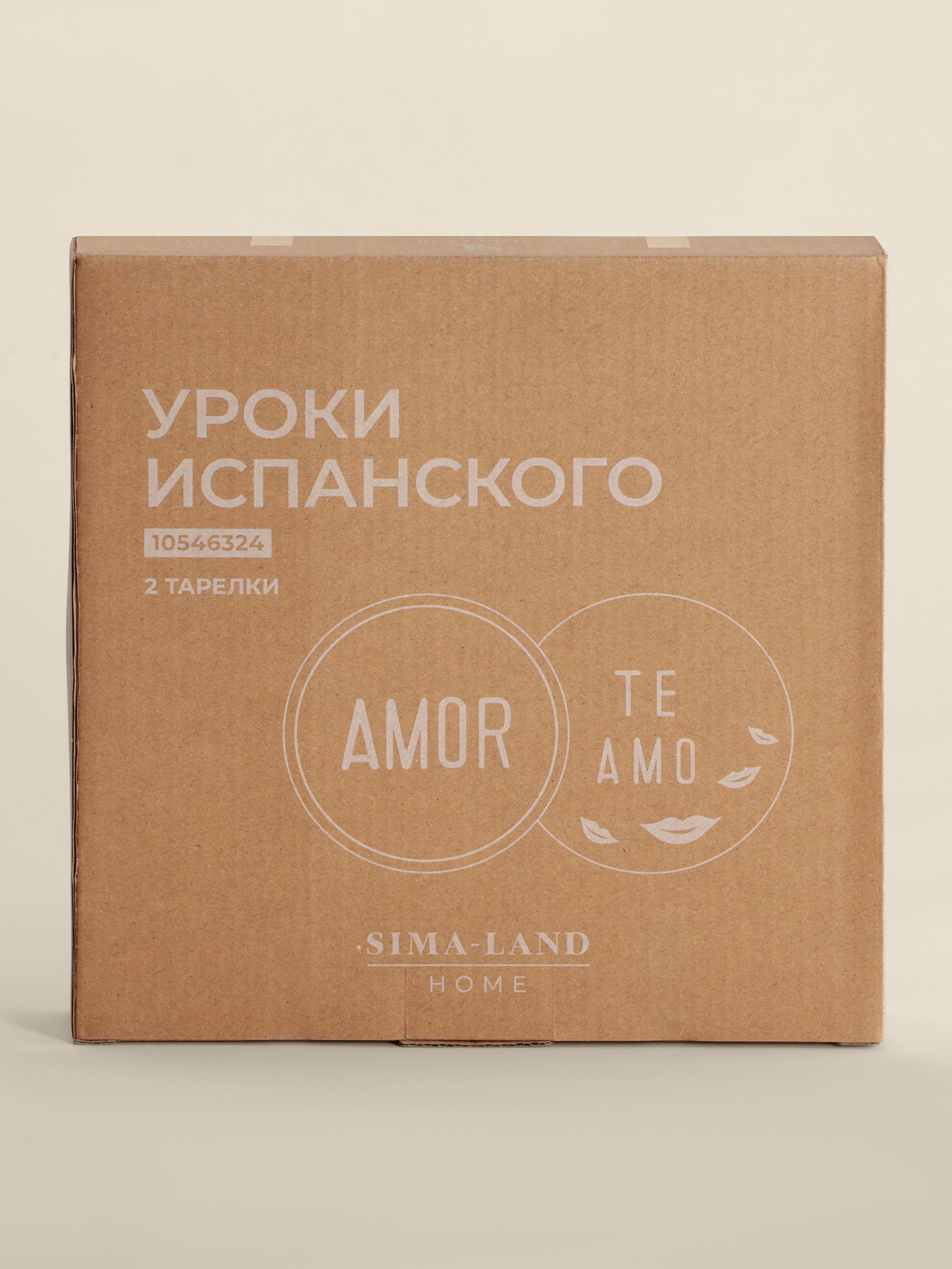 Тарелки SL Home "Уроки испанского: Amor - Te amo", d=22 см, набор 2 шт., фарфор, белые, розовые, 22х22х2 см., Sima-Land Home, Китай