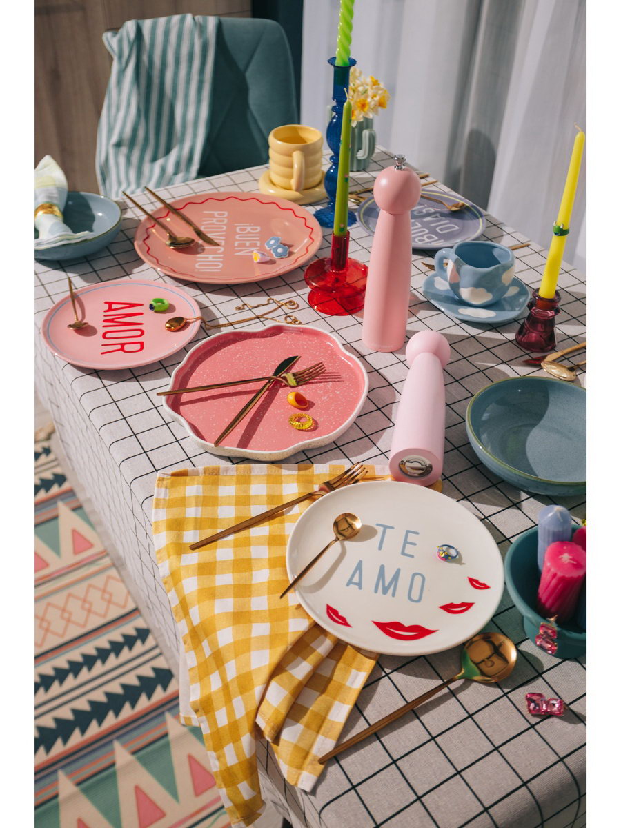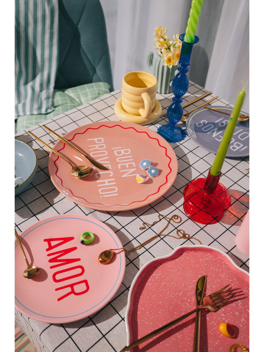Тарелка для пиццы SL Home "Уроки испанского: Buen provecho", d=30 см, фарфор, розовая, 30х30х2 см., Sima-Land Home, Китай