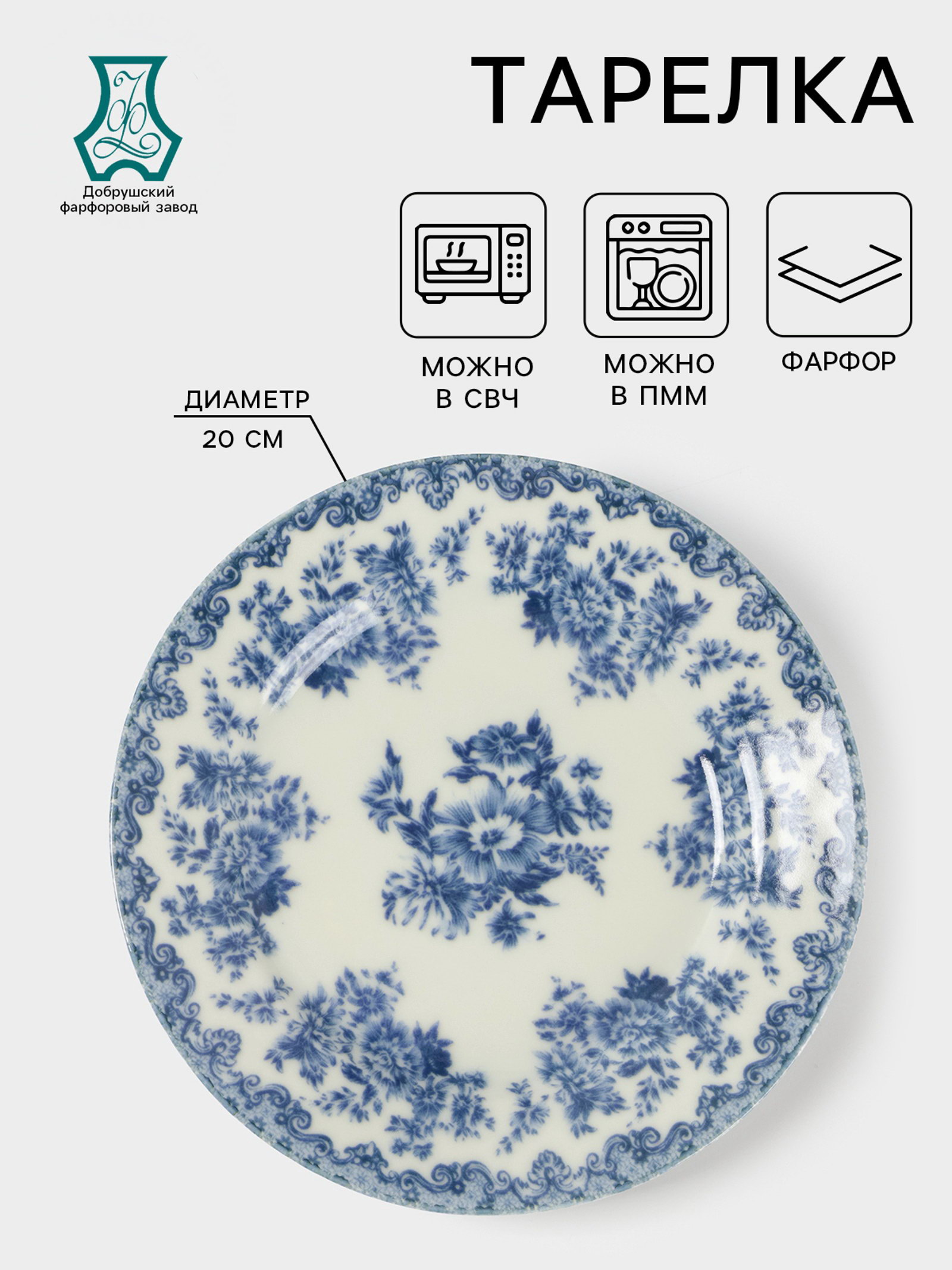 Тарелка Добрушский завод "Версаль", d=20 см, фарфор, белая, синяя, 20 см., Добрушский фарфоровый завод, Беларусь