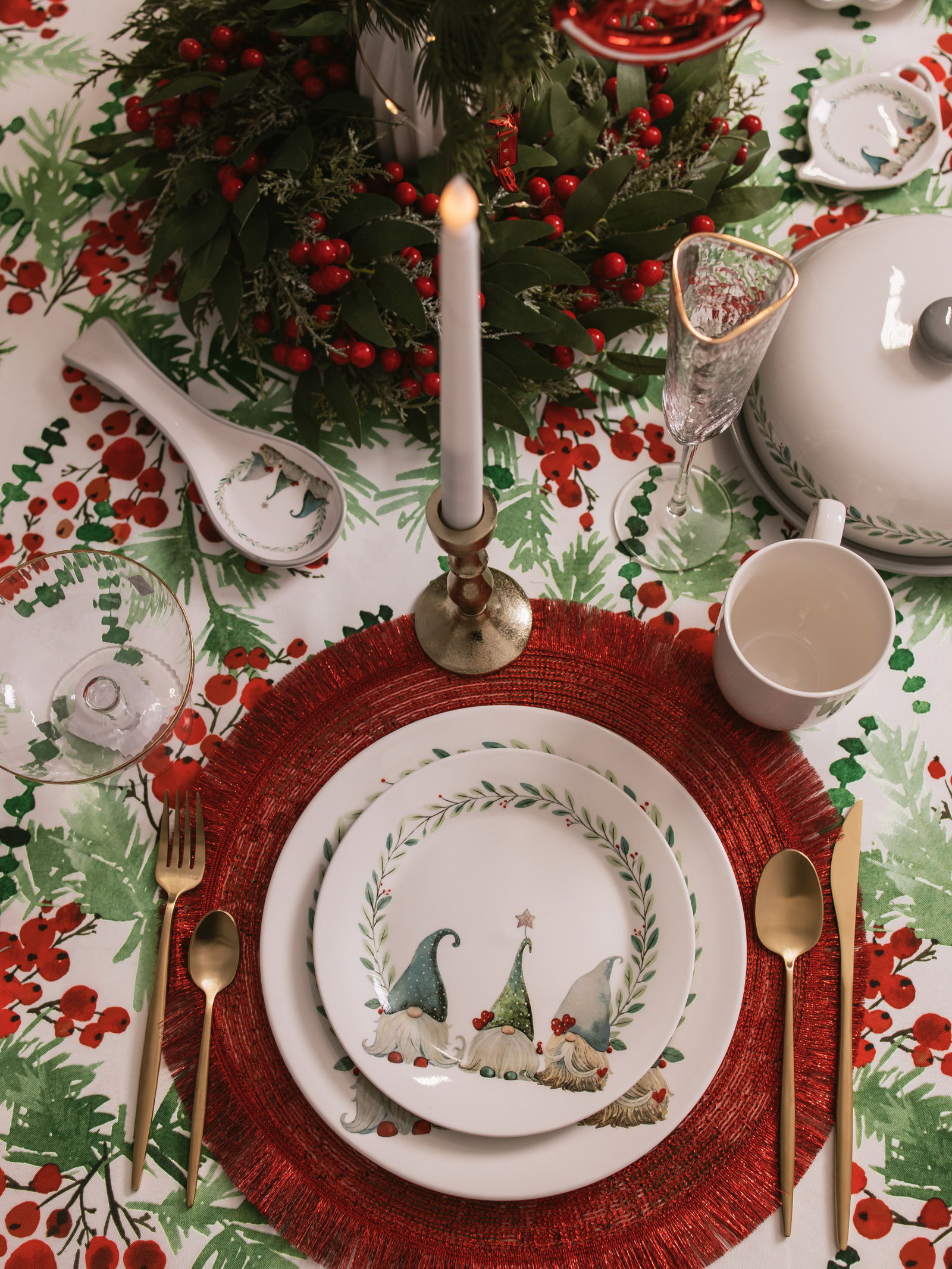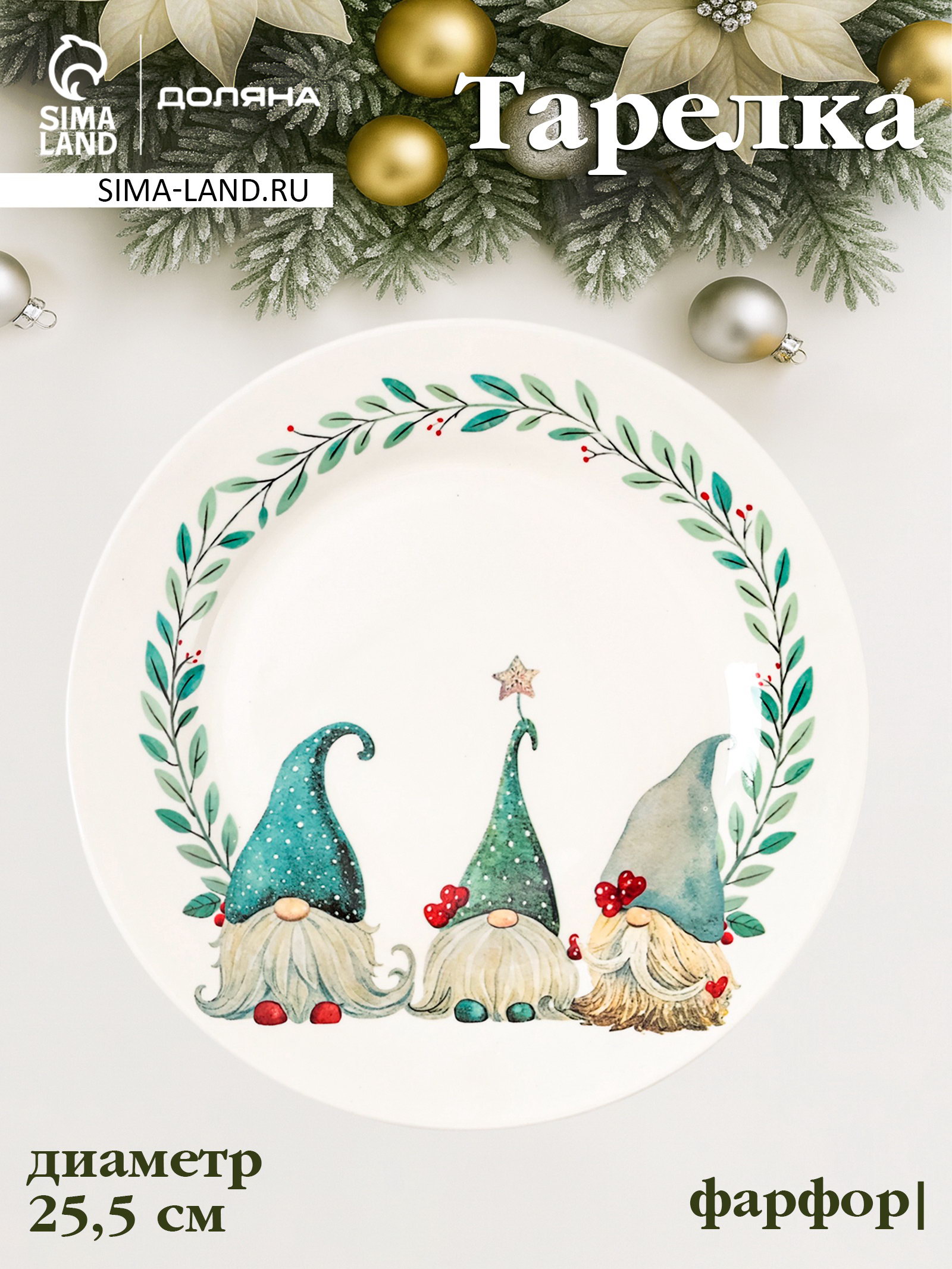 Тарелка новогодняя "Домашние гномики", d=25.5 см, фарфор, белая, 25.5х25.5х2 см., Доляна, Китай