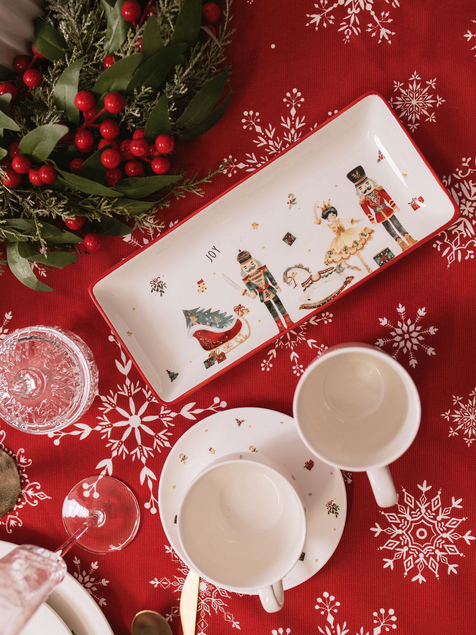 Тарелка сервировочная новогодняя "Сказочный бал.Щелкунчик", 28x12.1x3.3 см, доломит, белая, 12.1x28x3.3 см., Доляна, Китай