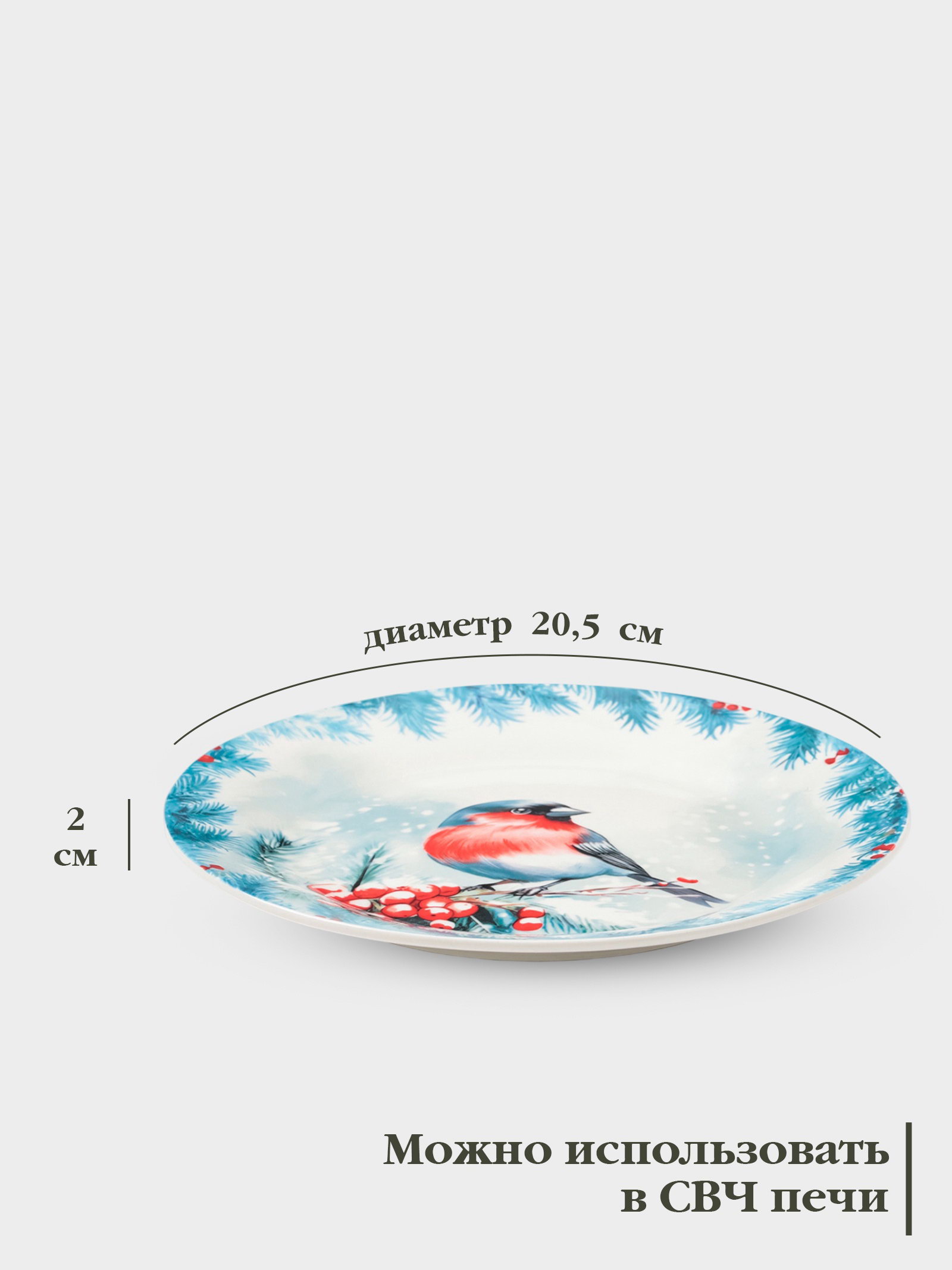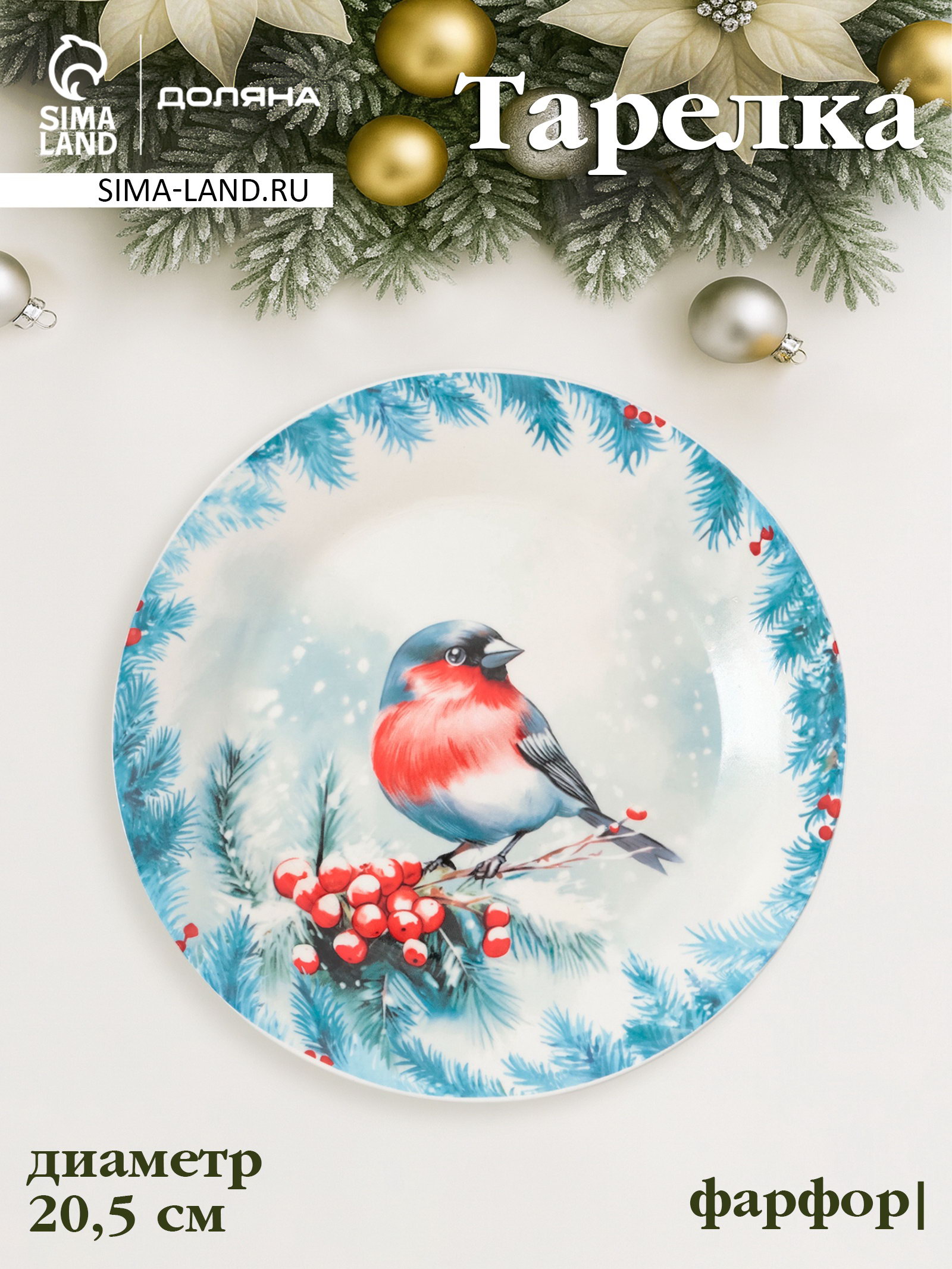 Тарелка новогодняя "Зимний вечер", d=20.5 см, фарфор, белая, 20.5х20.5х2 см., Доляна, Китай