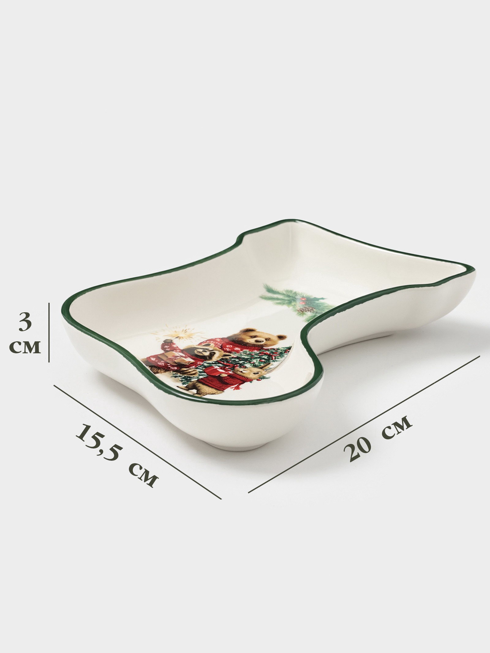Тарелка сервировочная новогодняя "Сказки зимнего леса", 20x15.5x3 см, доломит, белая, 15.5x20x3 см., Доляна, Китай