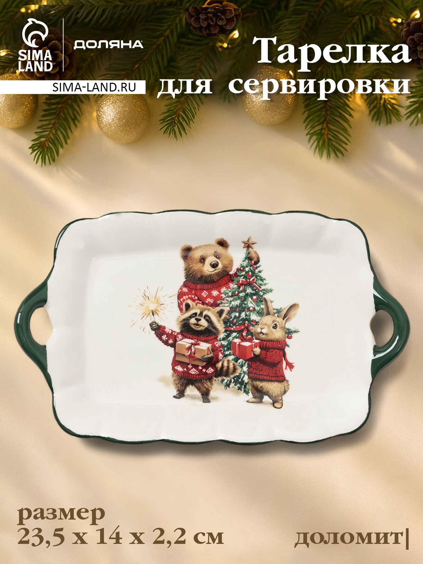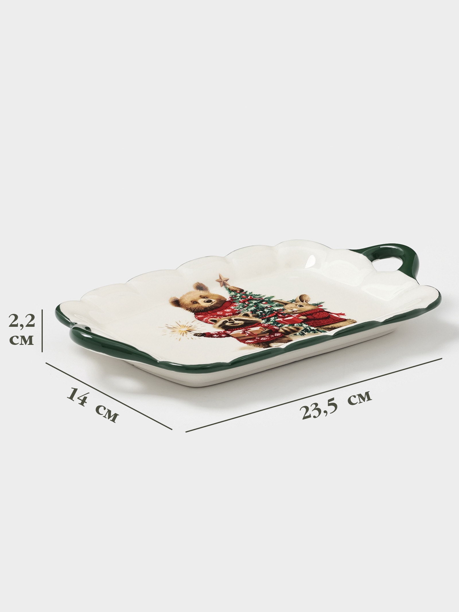 Тематика: Новогодняя, Сказочные животные Цвет: Белый, Зелёный Размер упаковки: 15.5 x 4 x 24 см. tnved: 6912002600 Набор: Нет Рисунок: Да Можно мыть в посудомоечной машине: Нет Можно использовать в СВЧ-печи: Нет Для горячего: Нет Матовая поверхность: Нет Символ года: Нет Вид тарелки: Плоская Текстура: Гладкая Особенности: Деколь Тематика праздника: Новый год Форма: Прямоугольник Добавьте волшебства вашей сервировке этой зимней посудой. Сказочная тарелка для сервировки станет необычным украшением вашего праздничного стола. Изготовленная из гладкого доломита, эта тарелка сочетает в себе изящество и практичность, добавляя особо праздничное настроение в интерьер. Сказочные мотивы лесных жителей делают каждый прием пищи волшебным событием. Особенности продукта