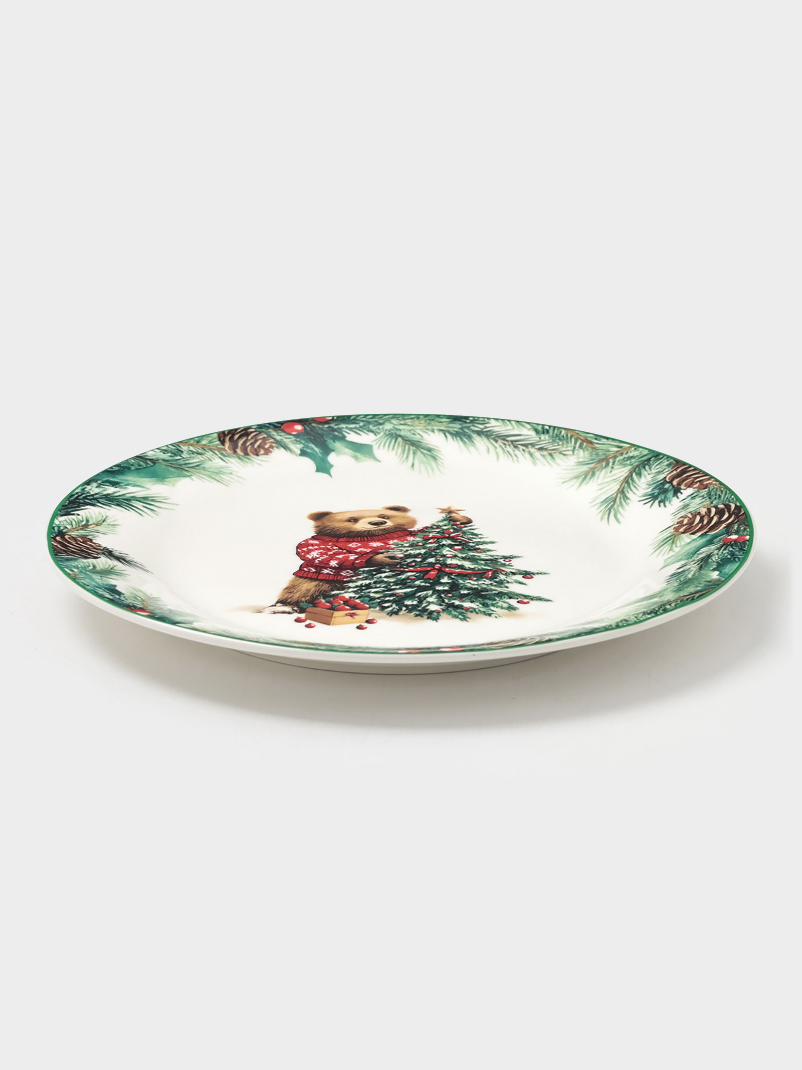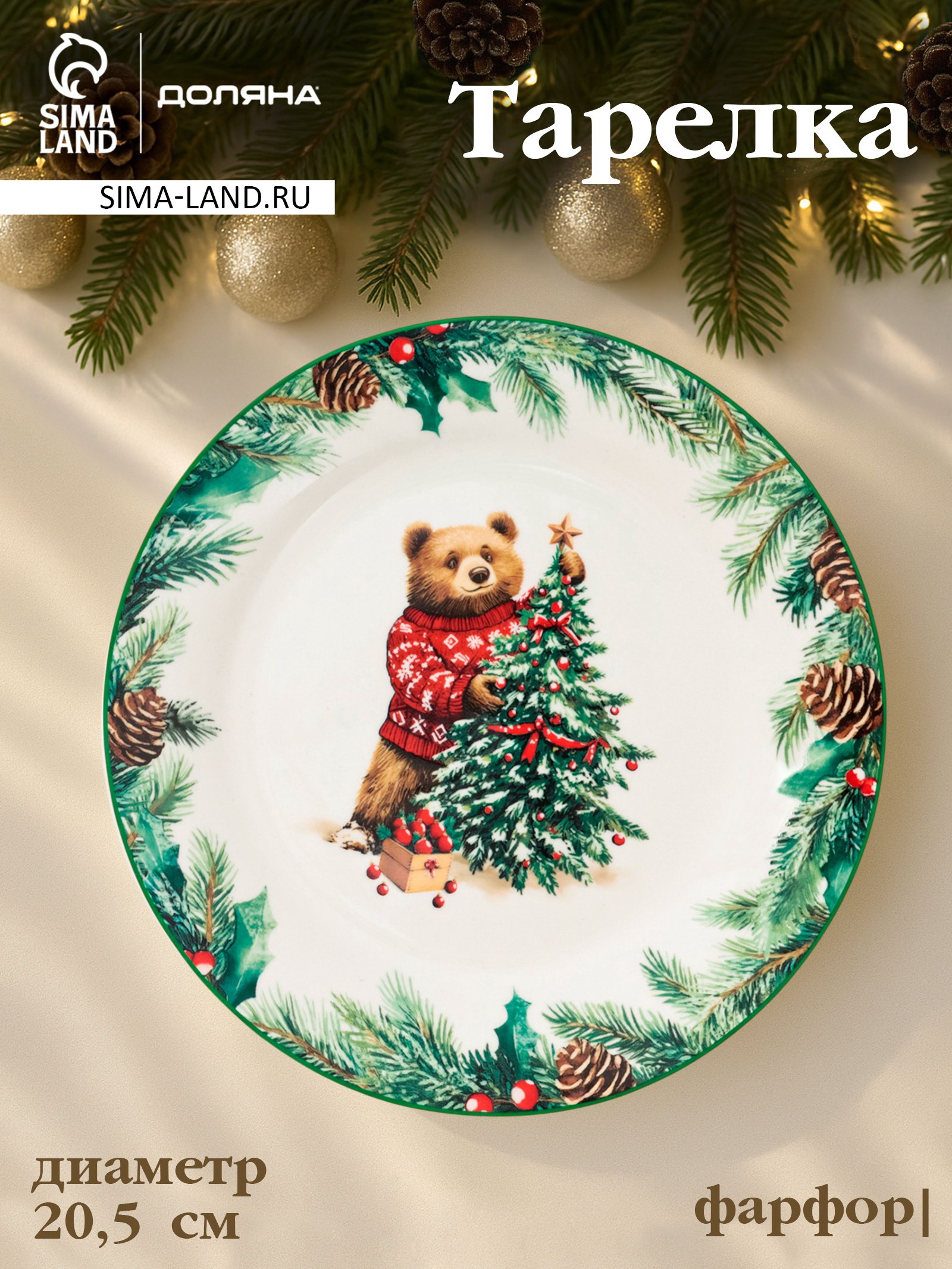 Тарелка новогодняя "Сказки зимнего леса", d=20.5 см, фарфор, белая, 20.5х20.5х2 см., Доляна, Китай