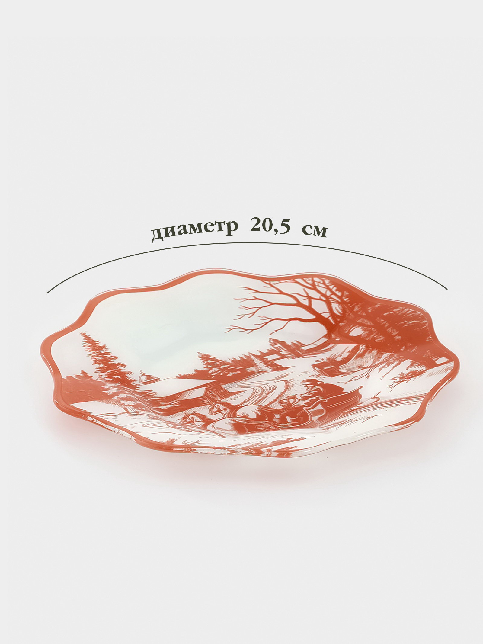 Праздник начинается с тарелки! Десертная тарелка яркий, но сдержанный акцент для зимнего застолья. Белое стекло с красным рисунком создаёт настроение без излишеств и подходит как для сладостей, так и для закусок. Особенности: