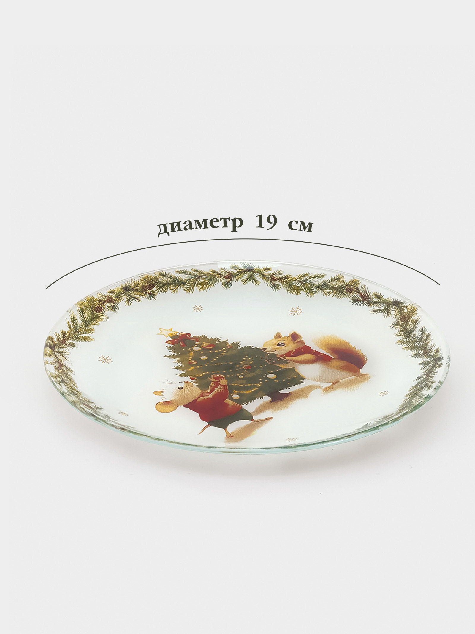 Десертная тарелка "Новогодние зверята", d=19 см, h=1.5 см, стекло, белая, 19х19х1.5 см., Доляна, Китай