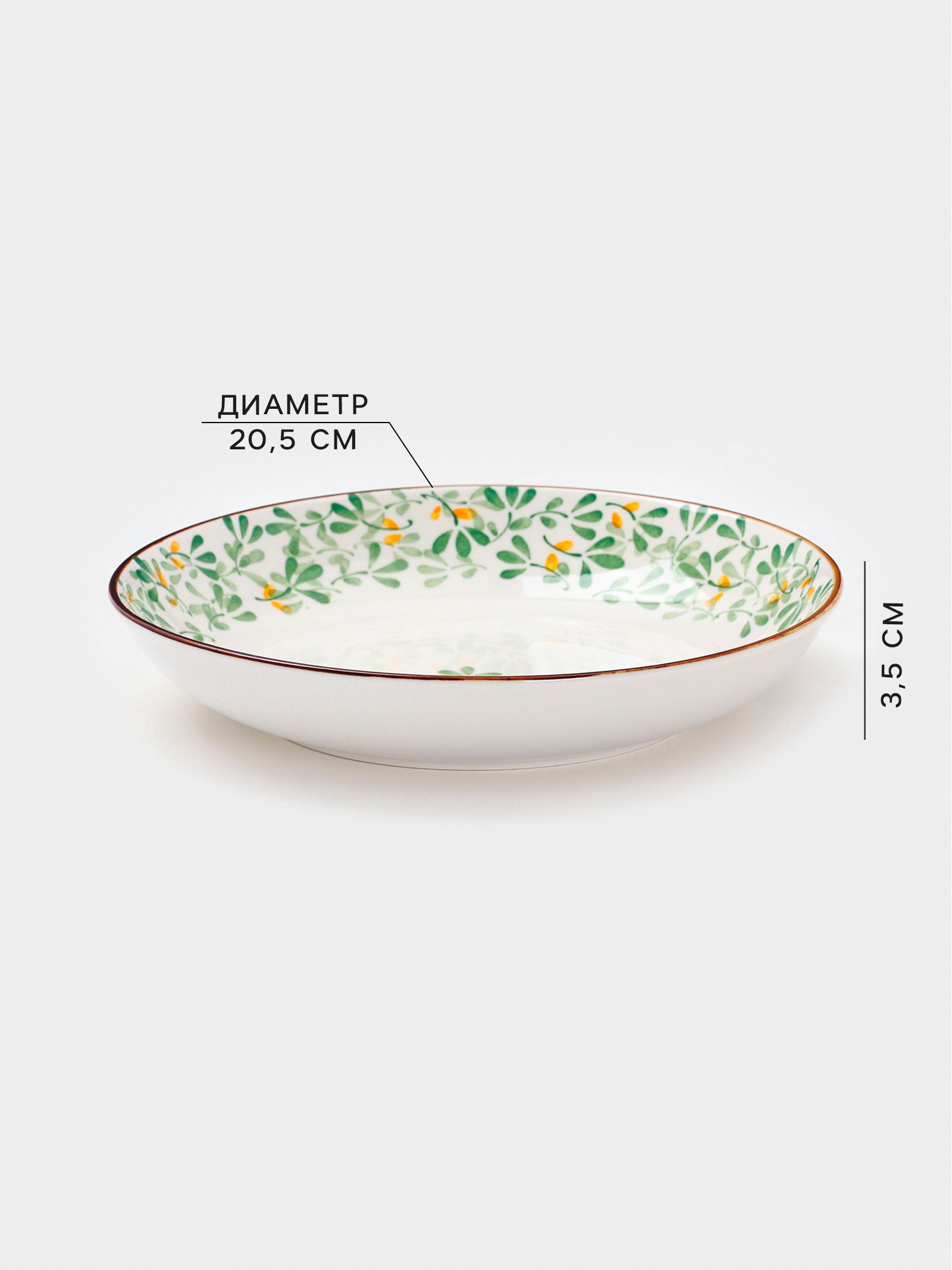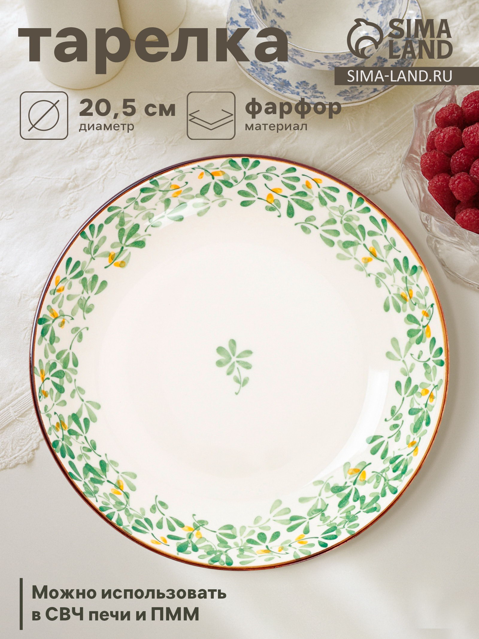 Тарелка "Гармония лепестков", d=20.5 см, фарфор, белая, зелёная, 20.5х20.5х1 см., Китай