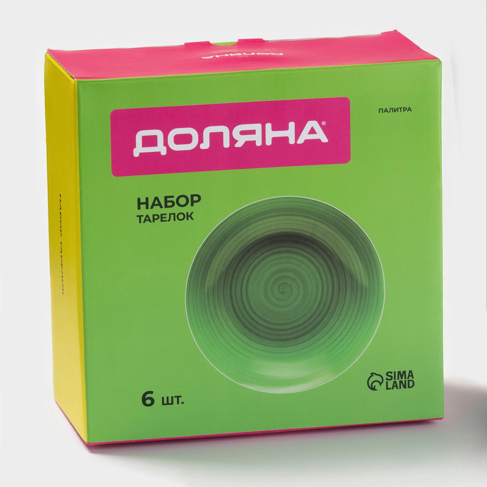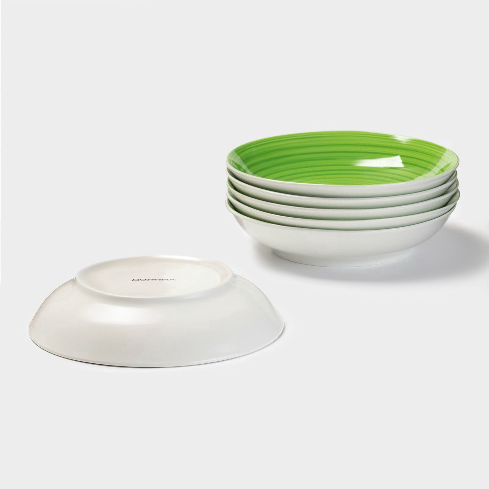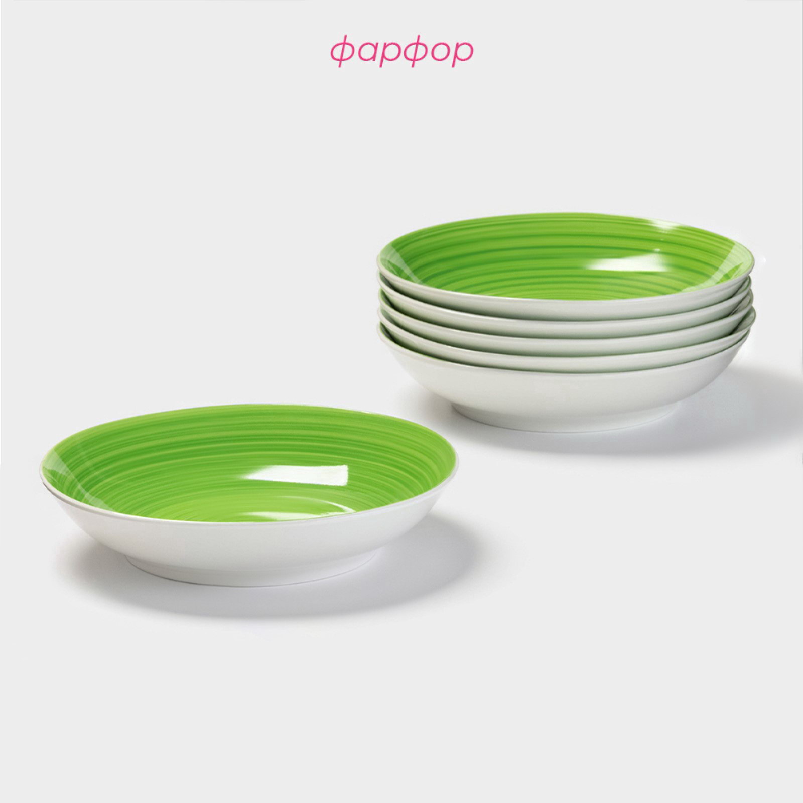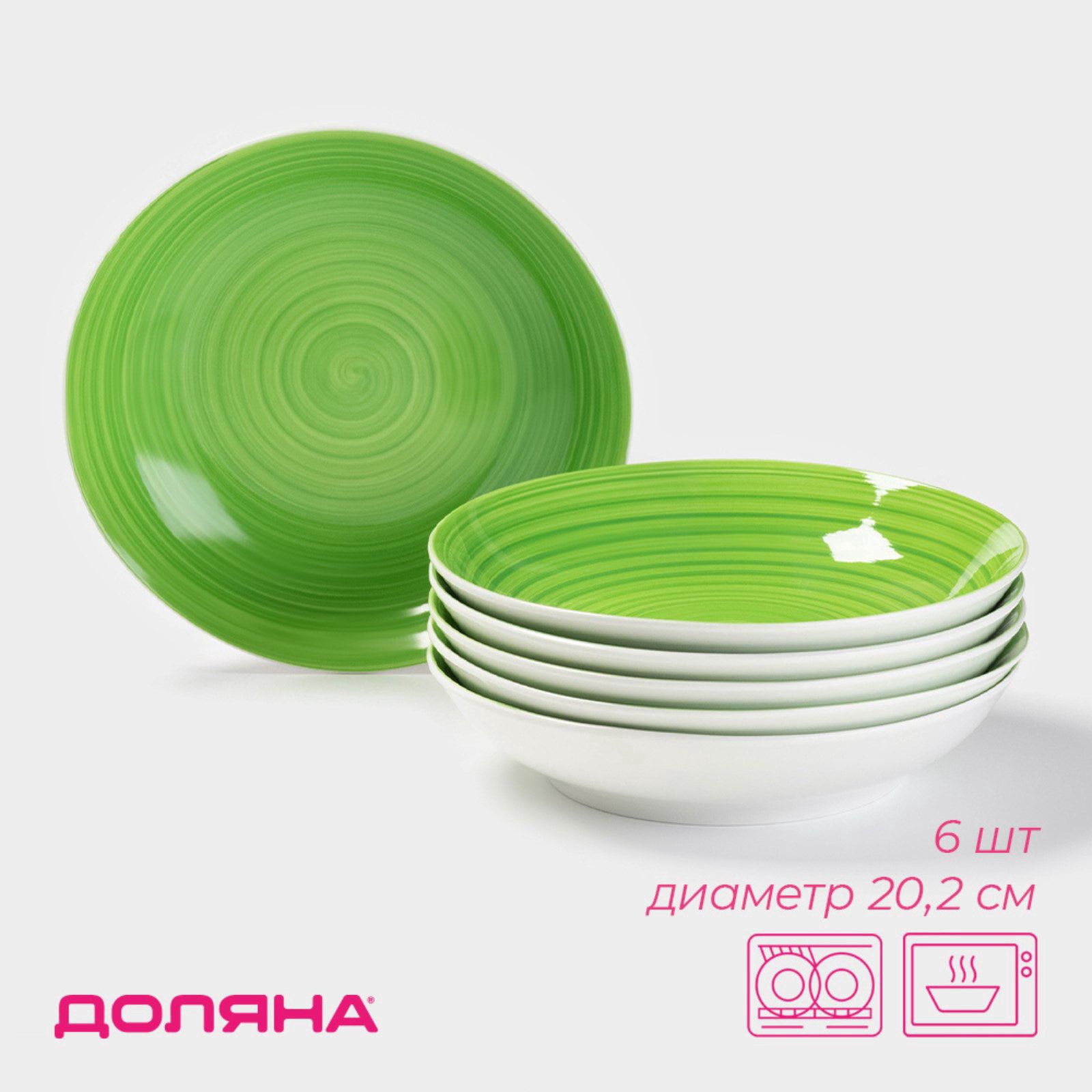 УЦЕНКА Набор тарелок глубоких "Палитра", 20.2x4.2 см, 6 шт., фарфор, зелёный, 20.2х20.2х4.2 см., Доляна, Китай