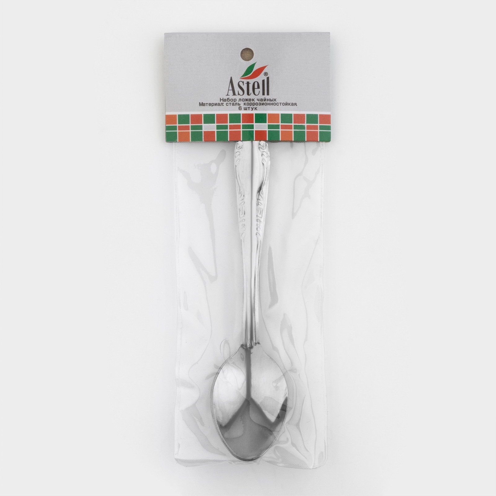 Набор чайных ложек из нержавеющей стали "Общепит", толщина 0.7 мм, 6 шт, серебряный, 3.5x15x0.1 см., Astell, Китай