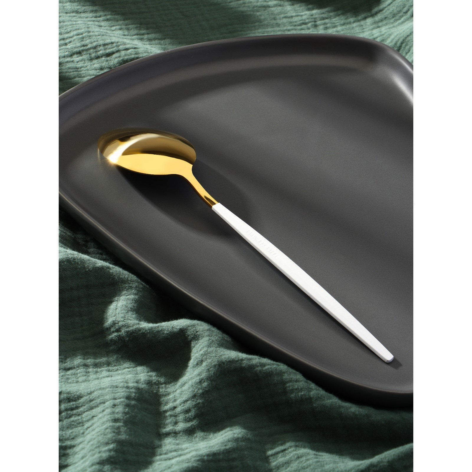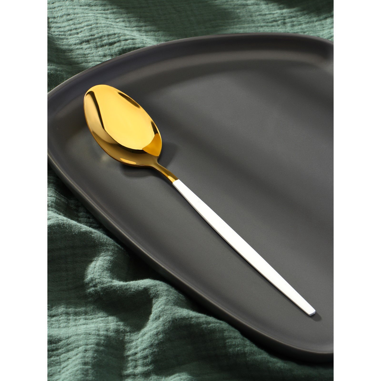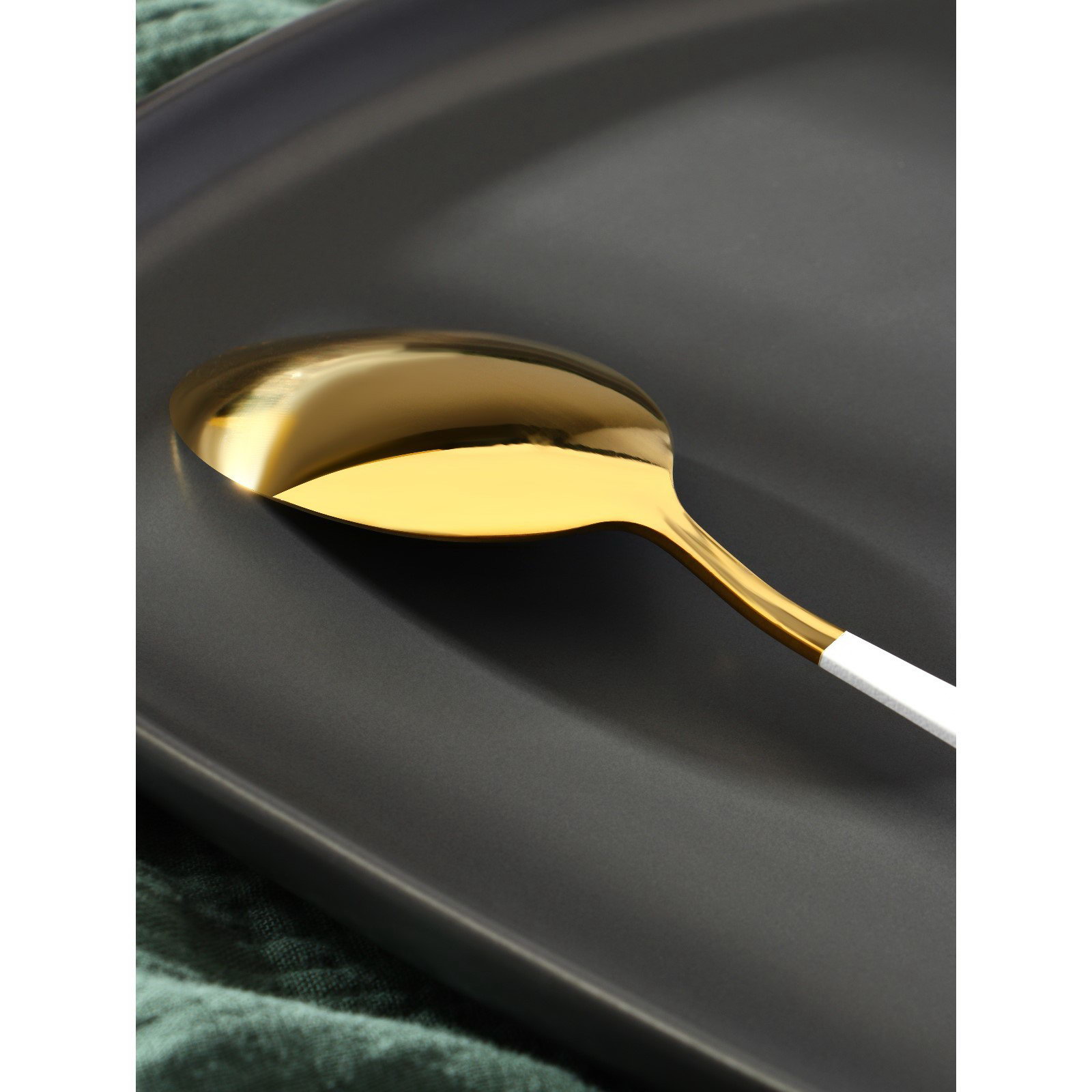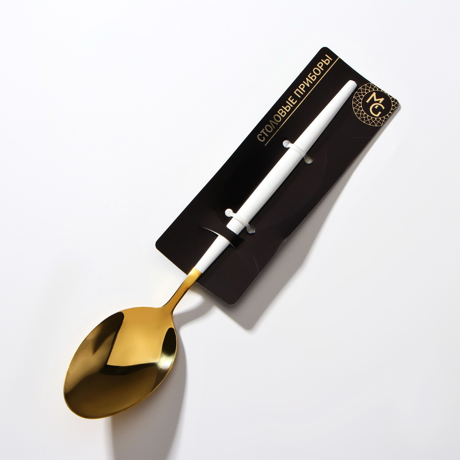 Ложка столовая из нержавеющей стали "Блинк", длина 22 см, на подвесе, цвет золотой, белая ручка, 4x22x1 см., Magistro, Китай