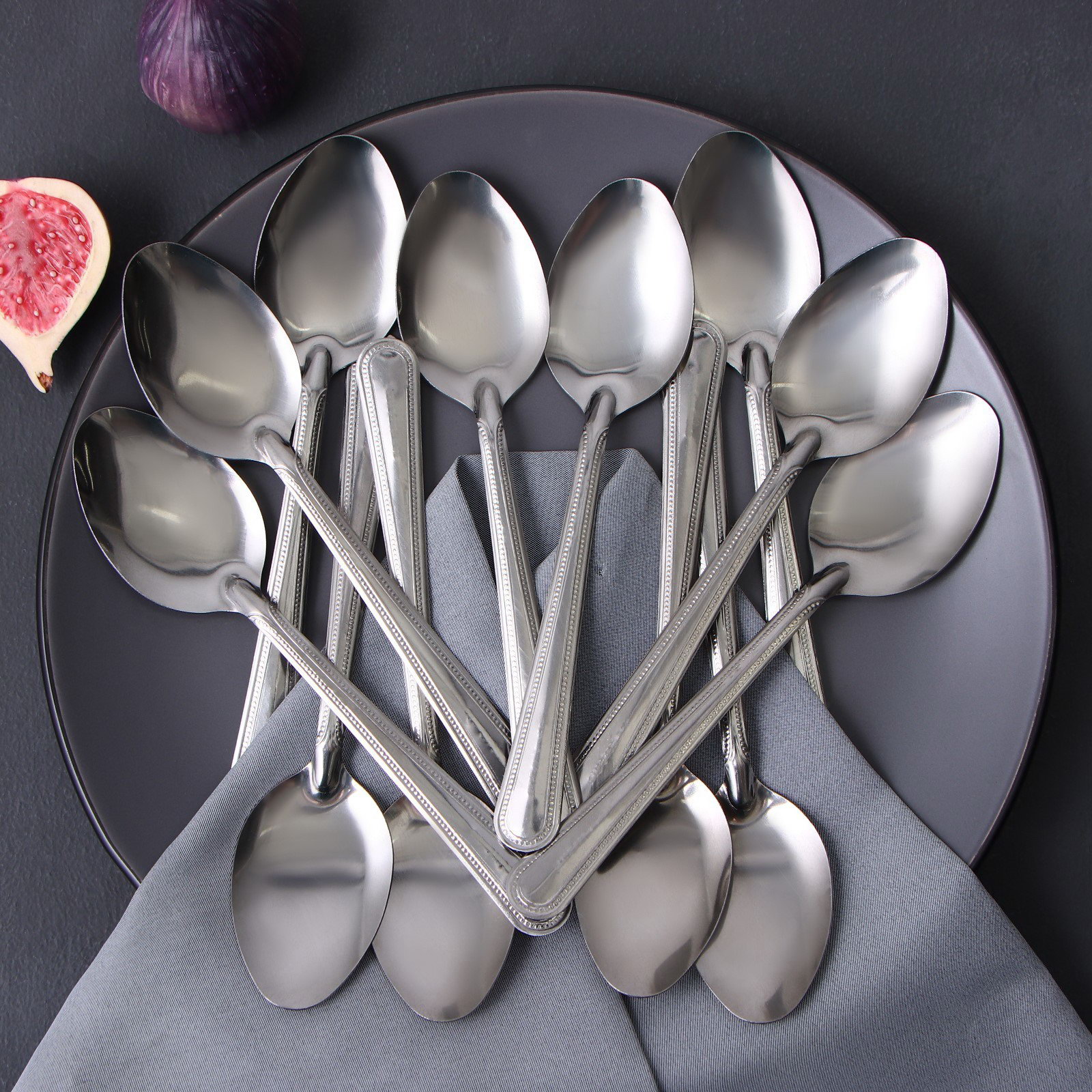 Набор столовых ложек из нержавеющей стали "Ванесса", длина 19 см, 12 шт, 4.5x19x0.1 см., Китай