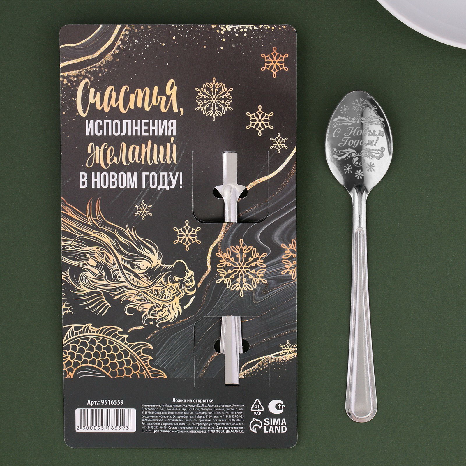 Ложка с гравировкой "Красивого Нового года!", 3x14 см, 3x2.5x14 см., Сима-ленд, Китай