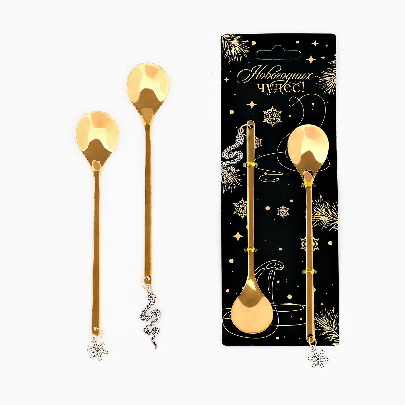 Подарочный набор ложек с подвесами "Новогодних чудес", 2 шт., 14.8 x 2.7 см, Сима-ленд, Китай