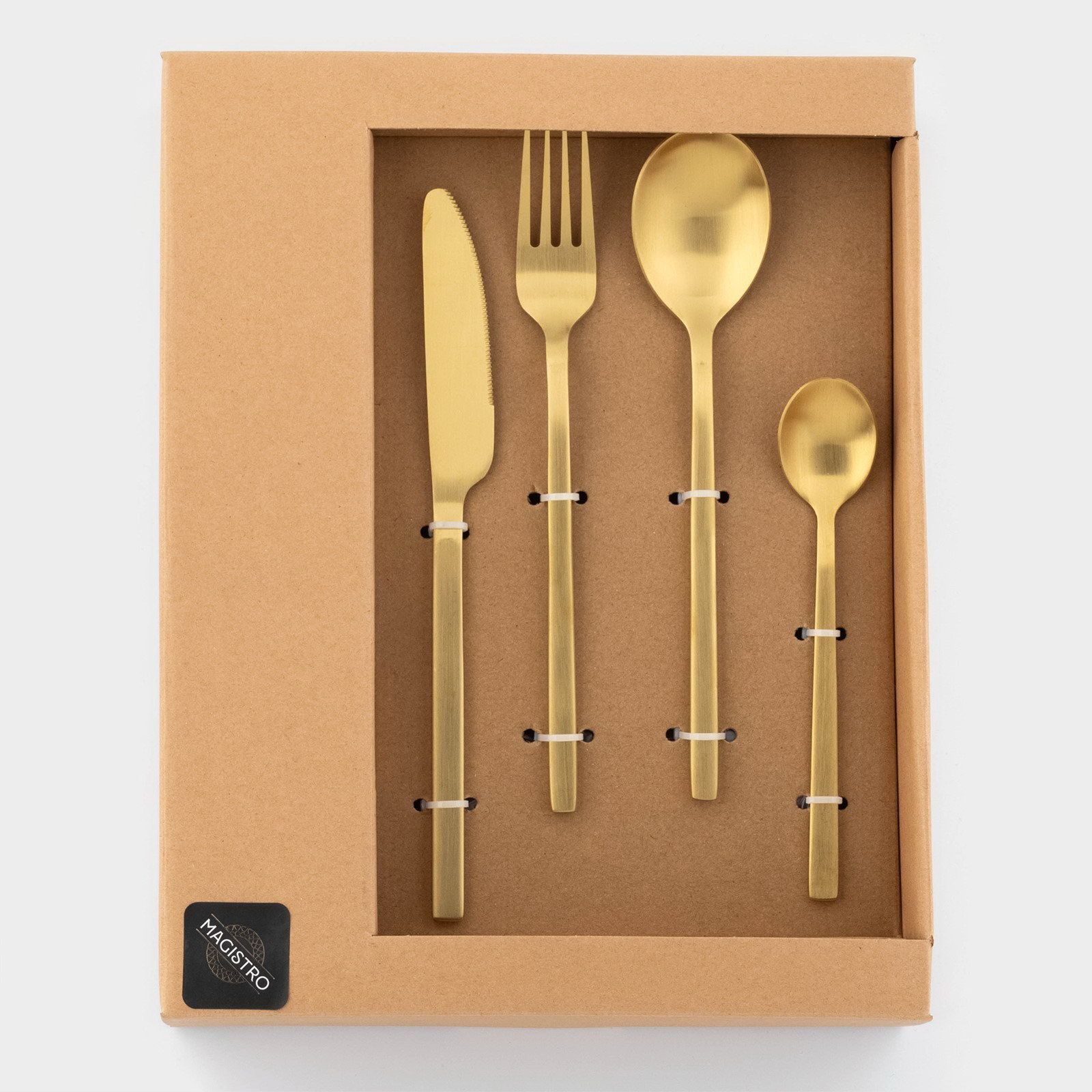 Набор столовых приборов "Оску стандарт", 12 предметов, нержавеющая сталь, золотистый, 22x28x7 см., Magistro, Китай