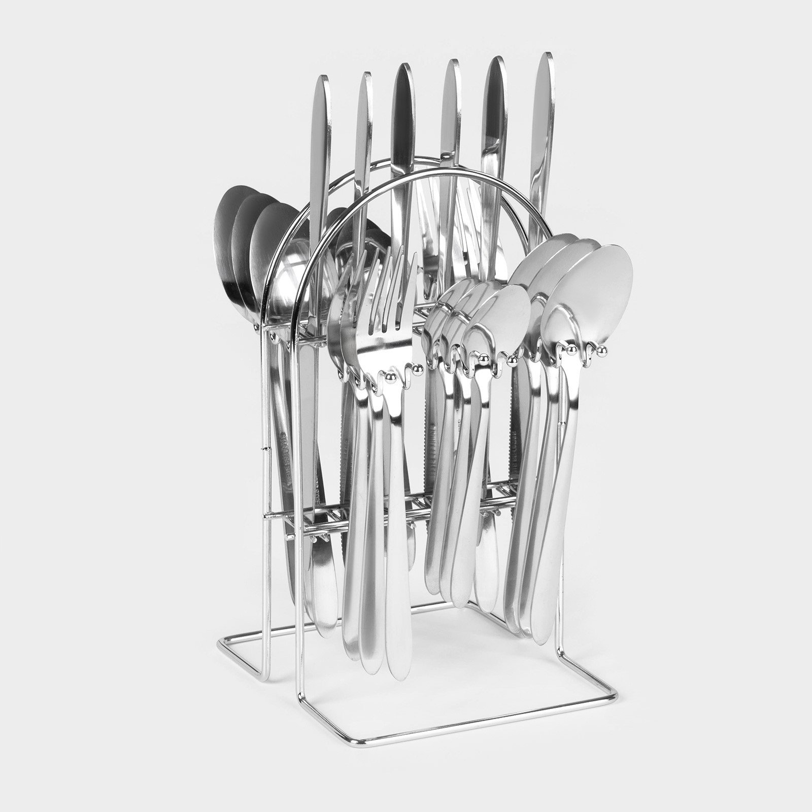 Столовые приборы "Классика", 24 предмета, на подставке, толщина 1.2 мм, нержавеющая сталь, серебристые, 14x28x14 см., Китай