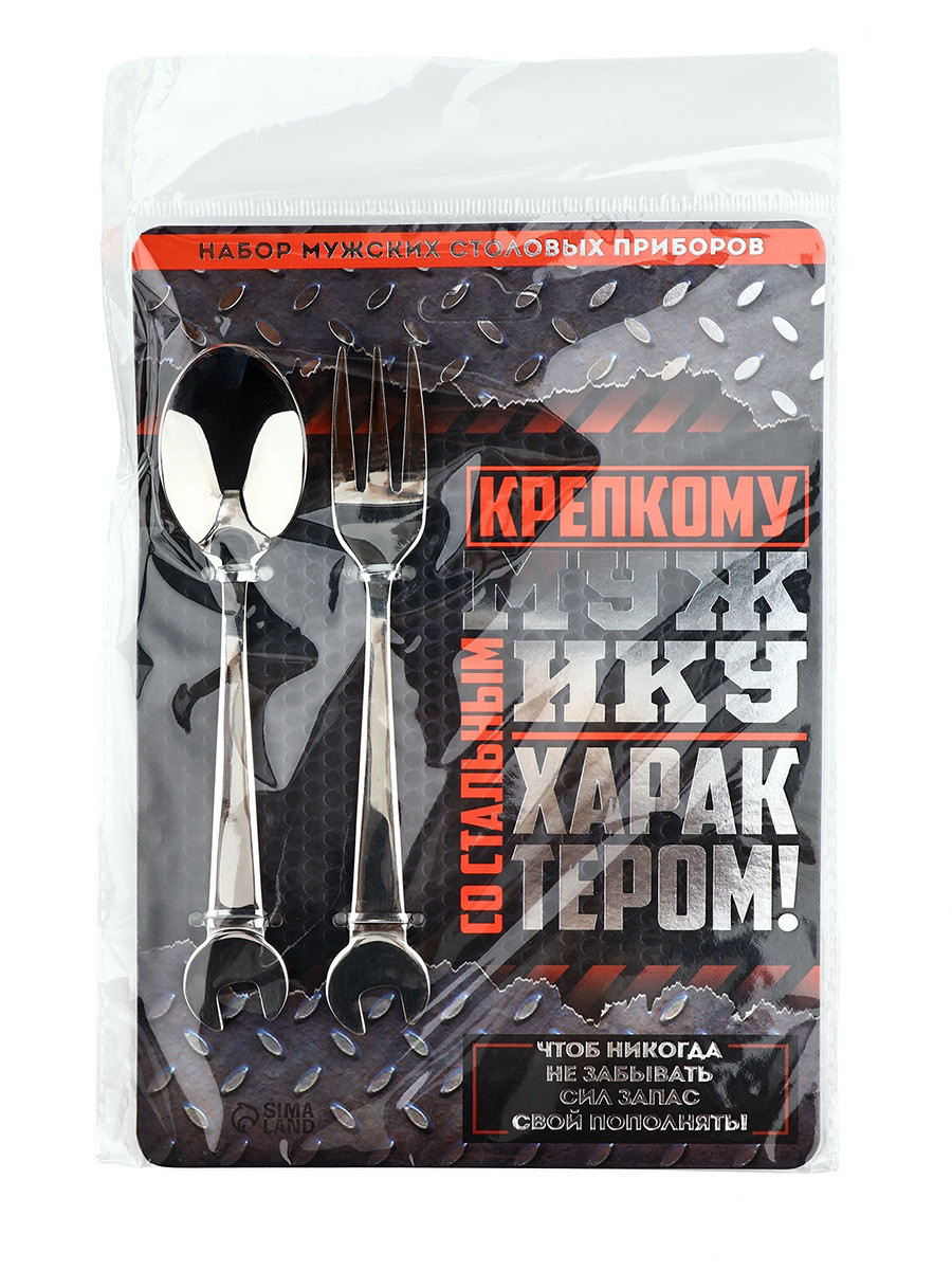 Столовые приборы "Крепкому мужику": ложка и вилка, 3x2x14 см., Дорого внимание, Китай