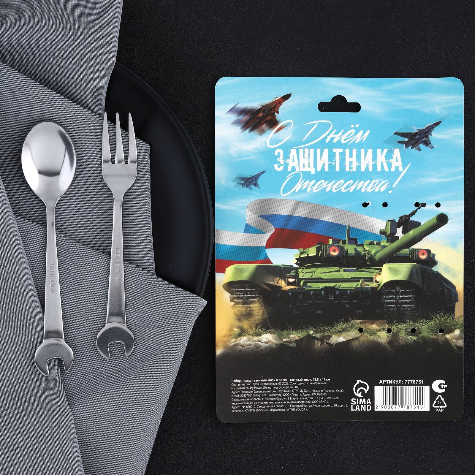Столовые приборы "С Днём защитника Отечества!": ложка и вилка, 14.3x1.5x19.8 см., Дорого внимание, Китай