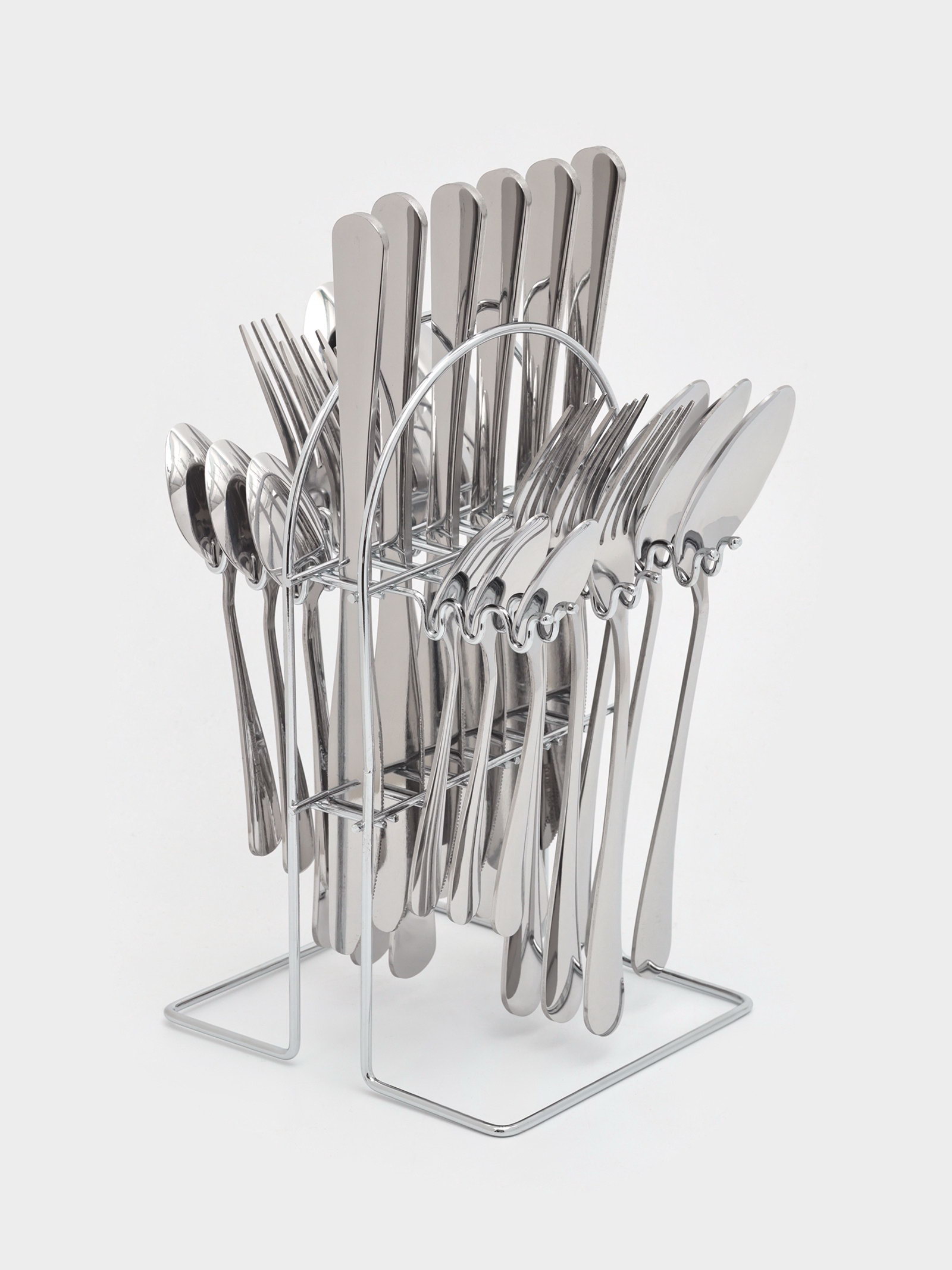 Набор столовых приборов "Водопад", 24 предмета, на подставке, нержавеющая сталь, серебристый, 14x16.5x26.5 см., Китай