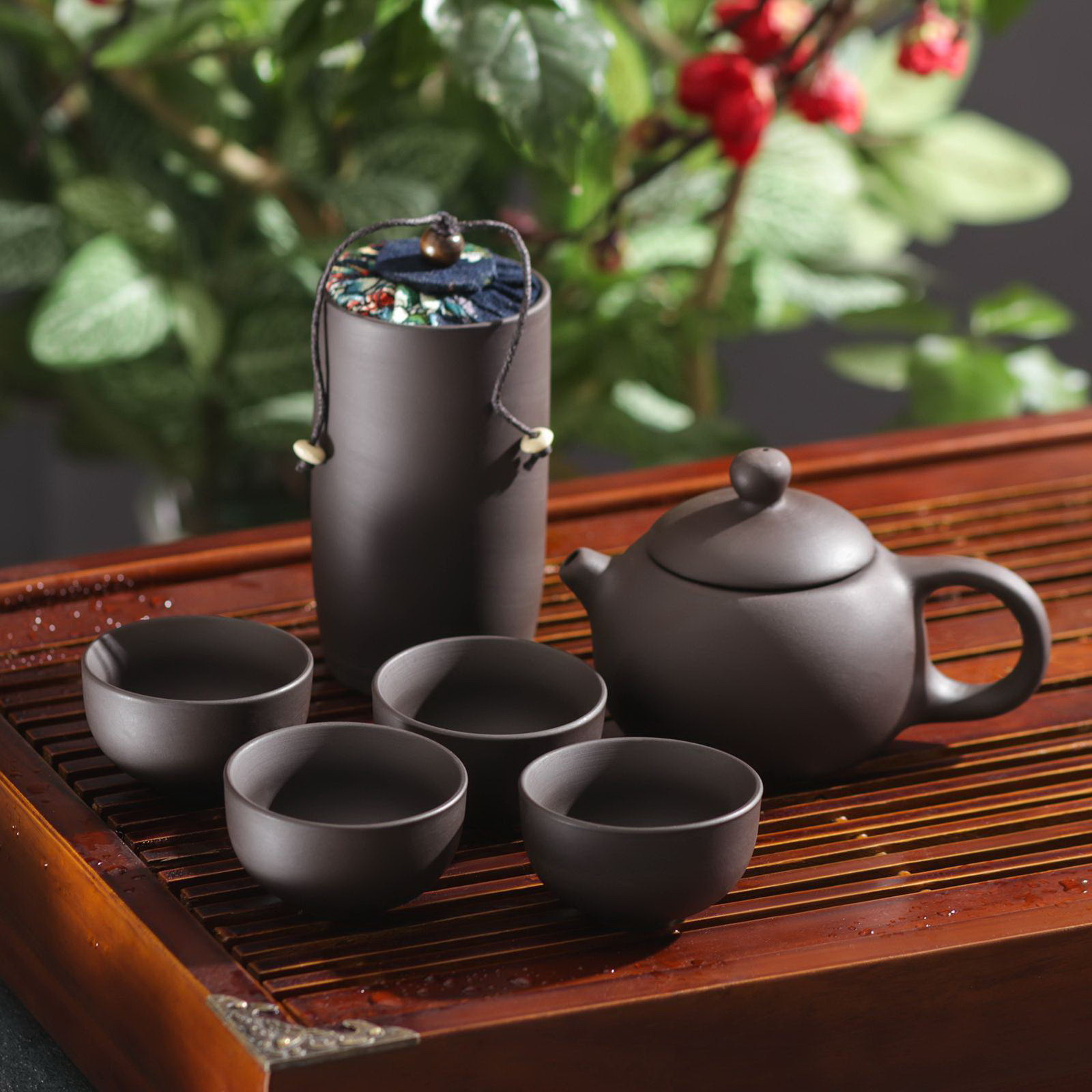 Набор для чайной церемонии керамический "Шоколад", 7 предметов: 4 пиалы 40 мл, чайник 150 мл, банка 150 мл, салфетка, цвет коричневый, 16.5x12.5x9 см., Китай