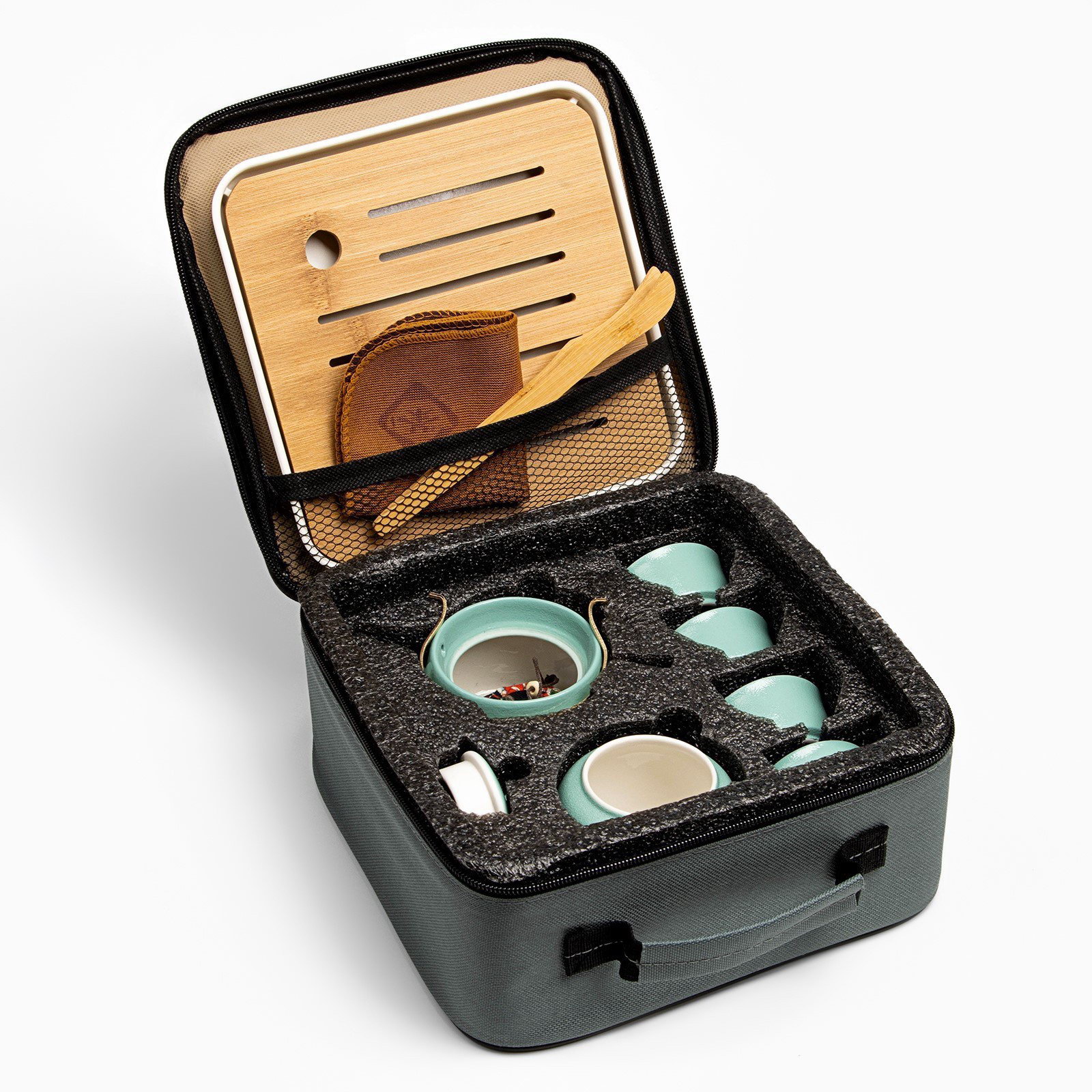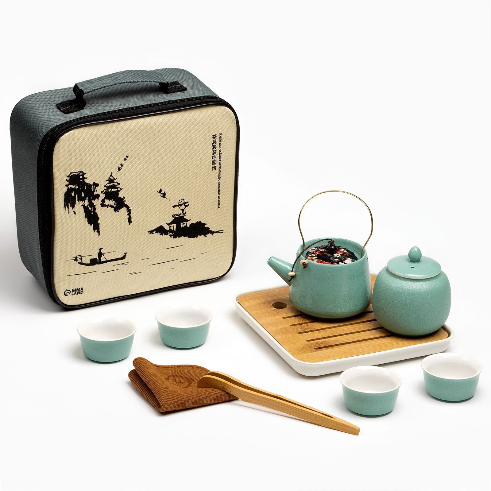 Объём, мл: 40, 200 Составляющие набора: Кружка, Пиала, Чайник, Чайница Размер упаковки: 22.5 x 10.5 x 22.5 см. Размер упаковки: 22.5 x 10.5 x 22.5 см. tnved: 6912002000 В наборе, шт.: 10 Тематика: Однотонная Для кого: Унисекс Вид упаковки: Сумка-органайзер Тематика праздника: Универсальная тематика Возраст: Для взрослых Тематика подарка: Посуда Наличие подставки: Да Можно использовать в СВЧ-печи: Да Можно мыть в посудомоечной машине: Нет Особенности: Без особенностей Текстура: Гладкая Цвет: Зелёный Рисунок: Нет Количество персон: 4 Адресат: Без адресата Портативный чайный набор, благодаря компактной сумке с ручкой, удобно брать с собой на природу, в гости, на дачу. Посуда подходит как для торжественных чайных церемоний, так и для повседневного домашнего использования. Изделие изготовлено из прочной керамики, а крышка соединена с ручкой с помощью веревки, чтобы избежать падения. Такой набор станет отличным подарком для искушенных ценителей восточной посуды. В комплект входит: