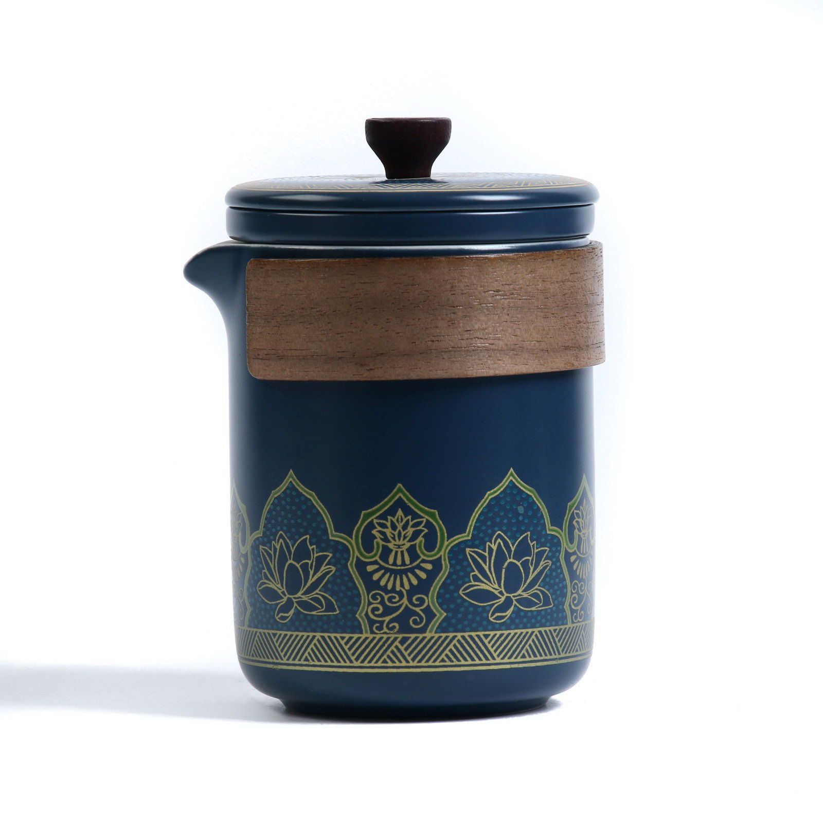 Набор для чайной церемонии "Шаньтоу", 6 предметов, на 3 персоны: чашка 50 мл, чайник 280 мл, керамика, синий, ДЖЕКИЧАЙ, Китай