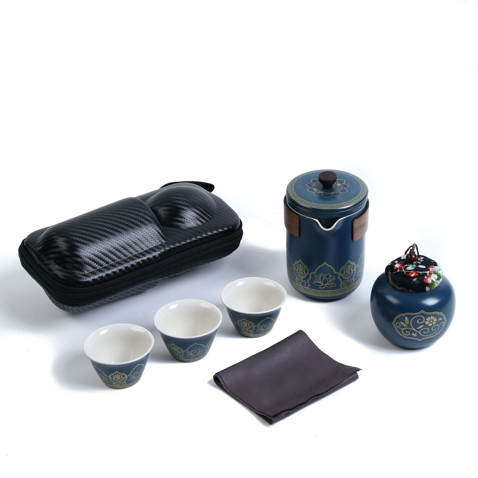 Набор для чайной церемонии 6 предметов на 3 персоны: чашка 50 мл, чайник 280 мл, синий, ДЖЕКИЧАЙ, Китай