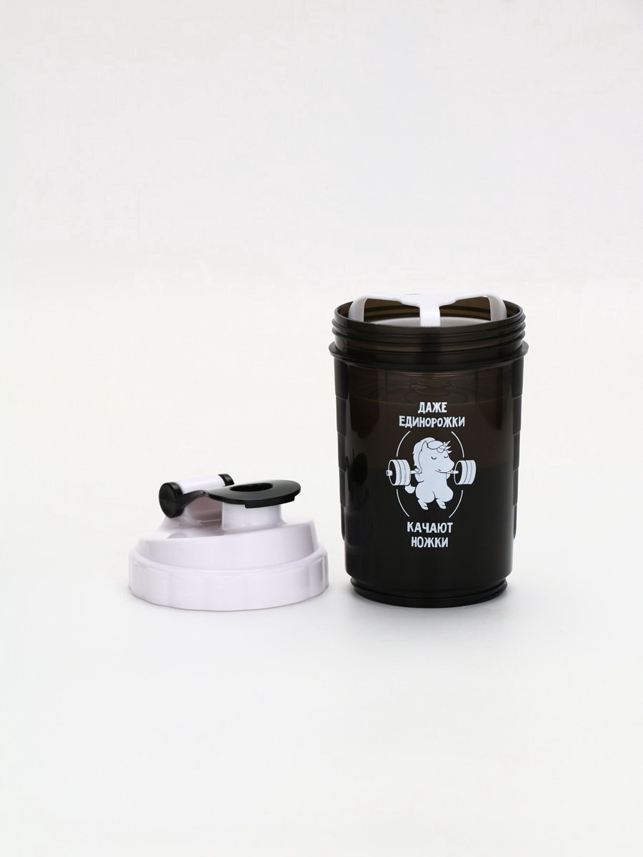 Шейкер спортивный "Даже единорожки качают ножки", 500 мл, с чашей, 8.5x7.5x17 см., Сима-ленд, Китай