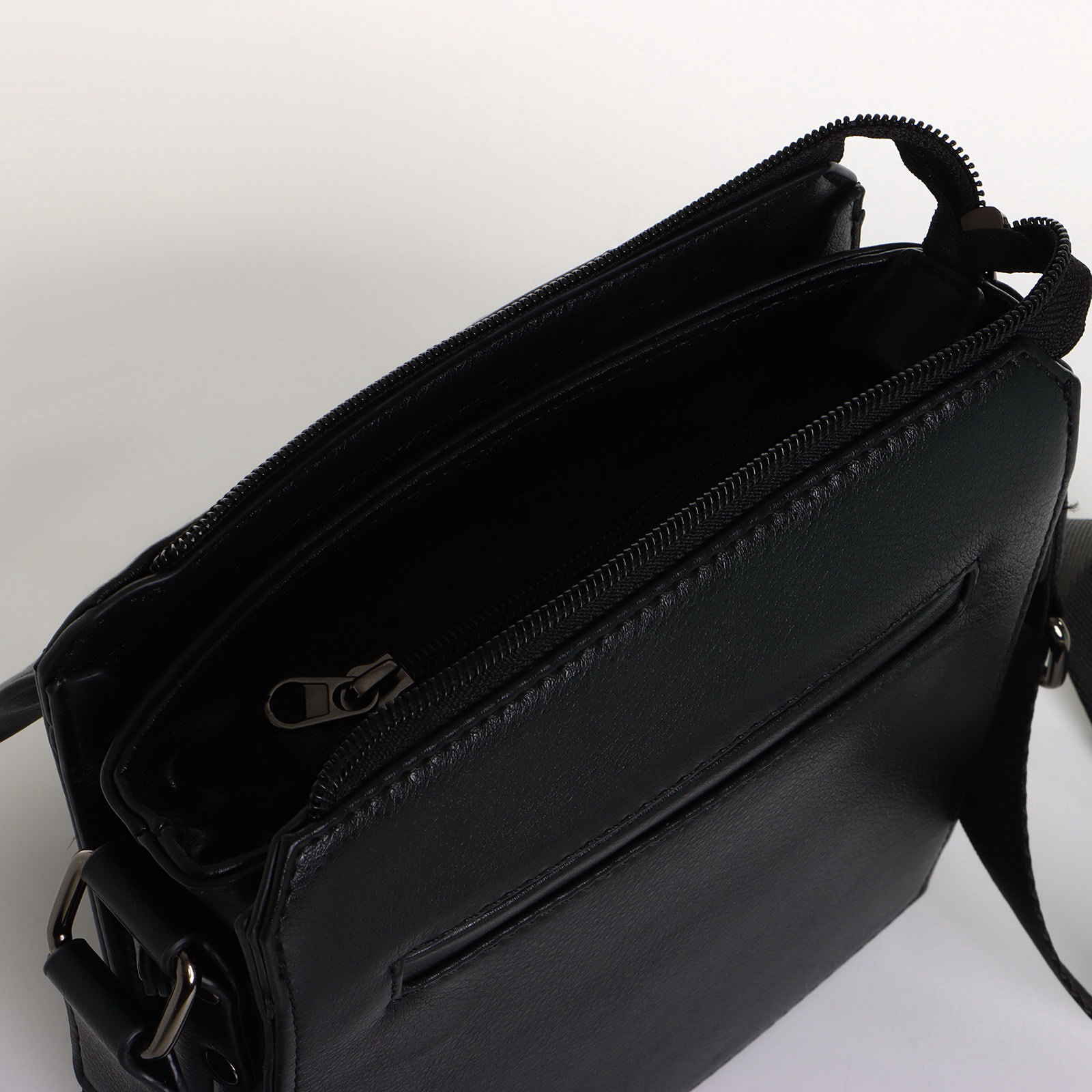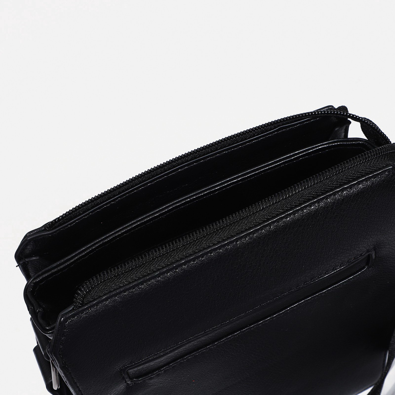 Сумка планшет мужская, 3 отдела на молнии, 2 наружных кармана, чёрная, 4x18x22 см., Китай